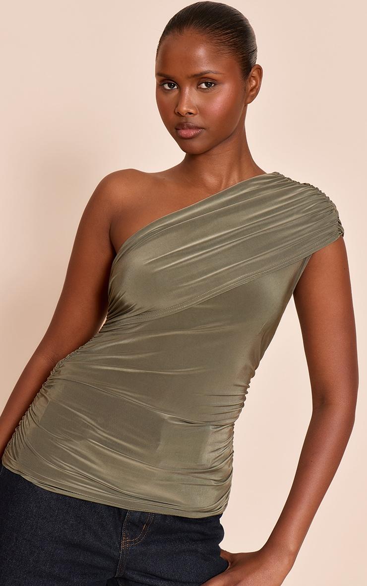 Opt for a fashion-forward look in this olive double layer slinky overlay one shoulder top. Made from olive hue double layer material with a one shoulder design and a flattering figure hugging fit, it's the perfect top with a twist. Simply style with tailored pants, barely-there heels and understated gold jewelry to finish off your outfit.Length approx 48.5cm/19inch (Based on sample size US 4)Model wears size UK 8/ EU 36/ AUS 8/ US 4Model Height - 5ft 9inchp]:!mb-4inch>Category: TopsProduct type: Cami TopColor: OliveMaterial: Slinky JerseyDesign: PlainNeckline: One ShoulderSleeves: SleevelessOccasion: Evening