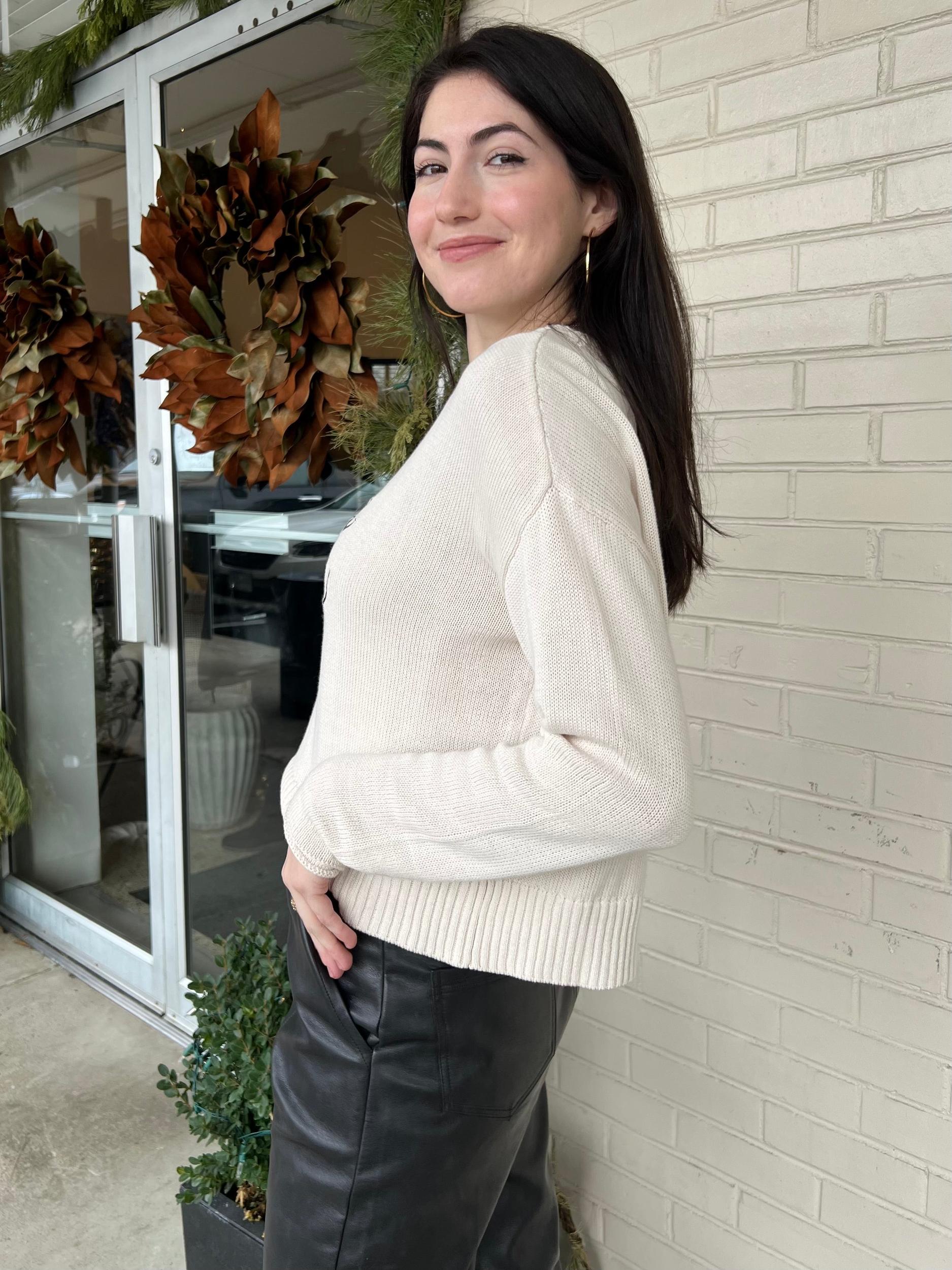 Add some flair to your winter wardrobe with our Sienna Sweater! This lightweight white knit, crewneck long-sleeve sweater is adorned with playful black embroidery that says "let it snow"! Stay cozy and stylish all season long, and manifest your next snow day!