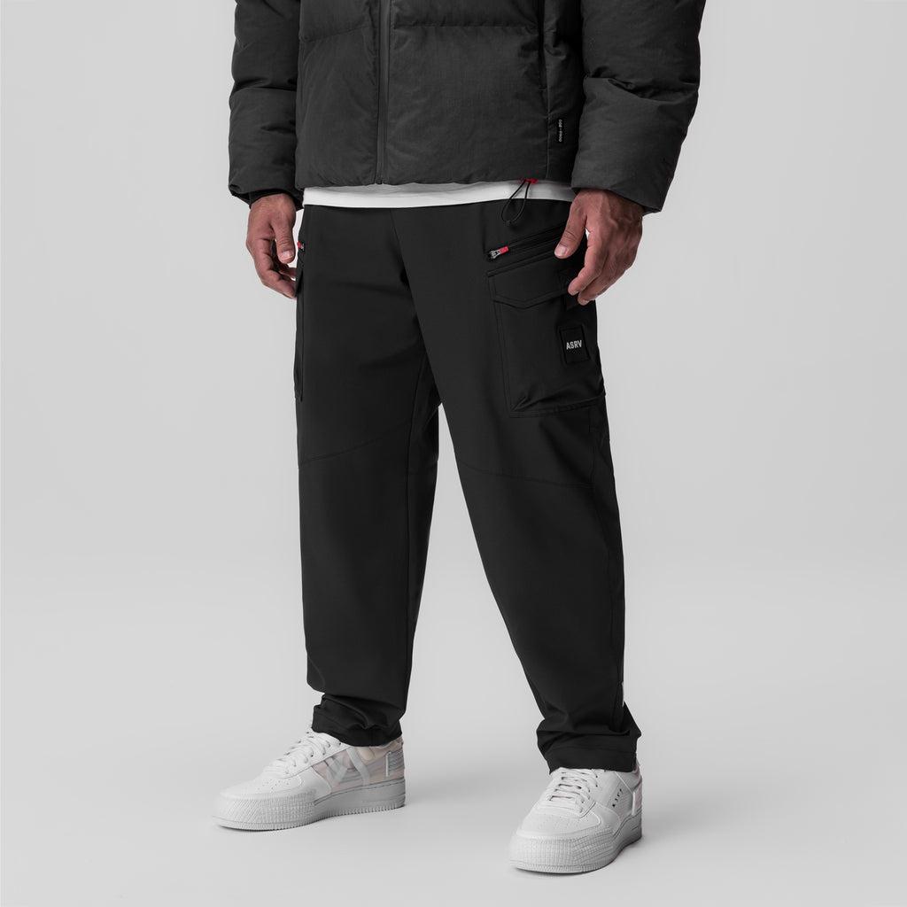 Technical city pant for unpredictable weather. Advanced two-layer fabric system features a stretchy water-repellent shell and a SilverPlus® antimicrobial mesh lining. Ample storage includes welted front pockets, two cargo pockets with velcro enclosure, and two horizontal Vislon® zipper drop pockets. Articulated pleats and design seams create a natural drape. Internal drawstrings with silicon-dipped tips provide a secure fit. Custom matte black D-Ring carabiner clip provides quick storage for keys and attachments.