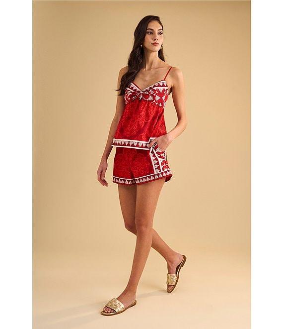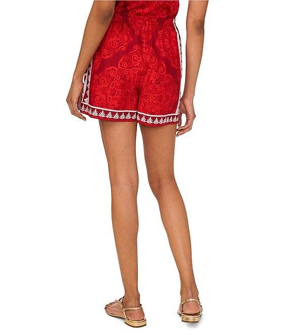From 1. STATE, these shorts feature: Woven fabrication Printed High rise PocketsContrast trim Elasticized waistline with drawstring Pull-on construction Approx. 3" inseam Cotton Machine washImported.