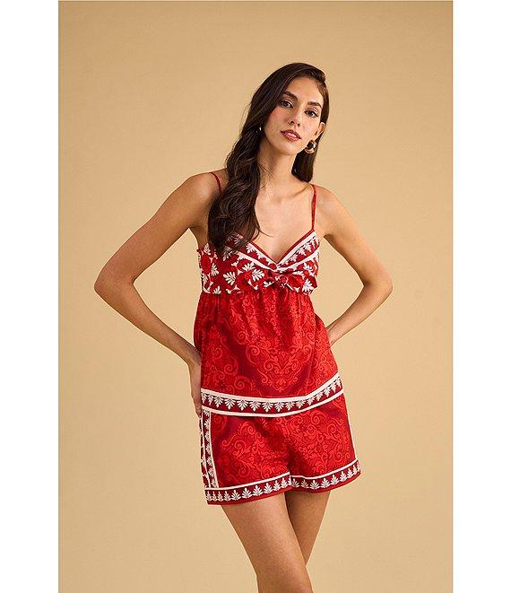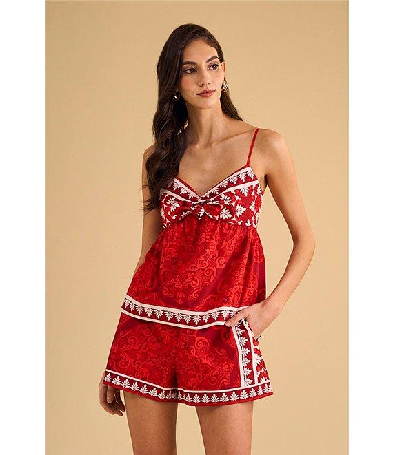 1. STATE Coordinating Printed Woven V-Neck Sleeveless Tie Front Tank