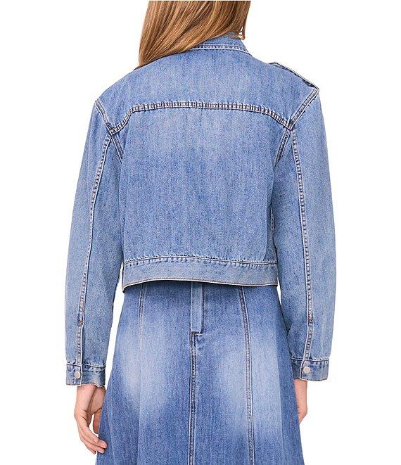 1. STATE Denim V-Neck Long Sleeve Drop Shoulder Button Front Jacket