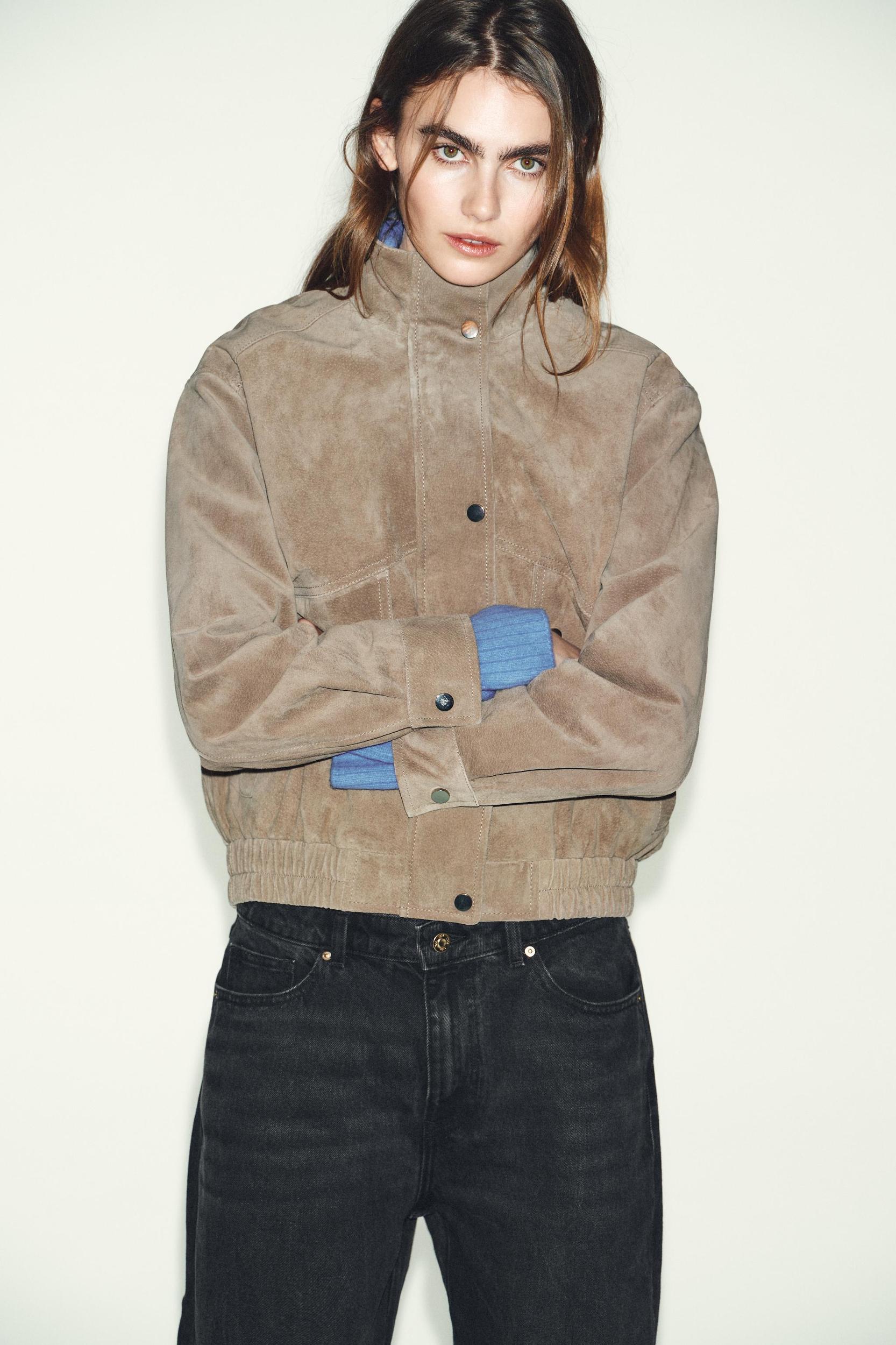 100% SUEDE LEATHER HIGH COLLAR JACKET
