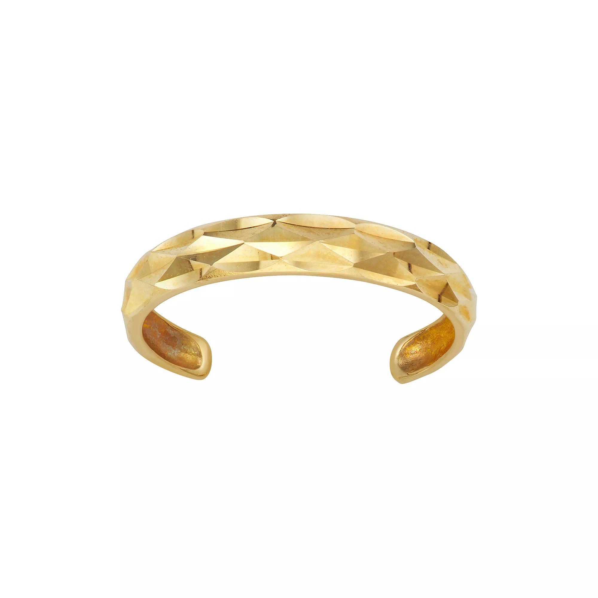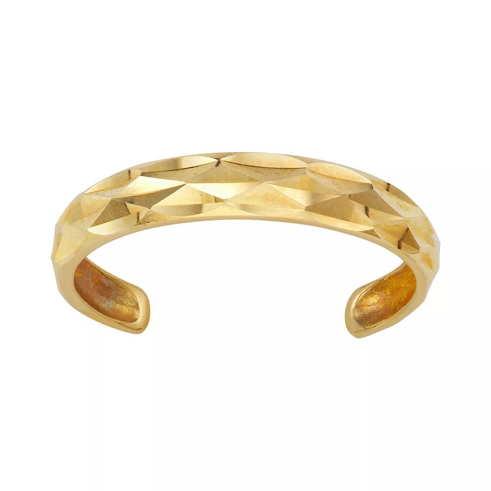 A diamond-cut texture gives this 10k gold toe ring eye-catching style. A diamond-cut texture gives this 10k gold toe ring eye-catching style. Width: 3 mm Size: adjustable Metal: 10k gold Finish: diamond-cut, polished Packaging: boxed Please note, due to the high value of this item, a signature may be required upon delivery. Size: One Size. Gender: female. Age Group: adult.