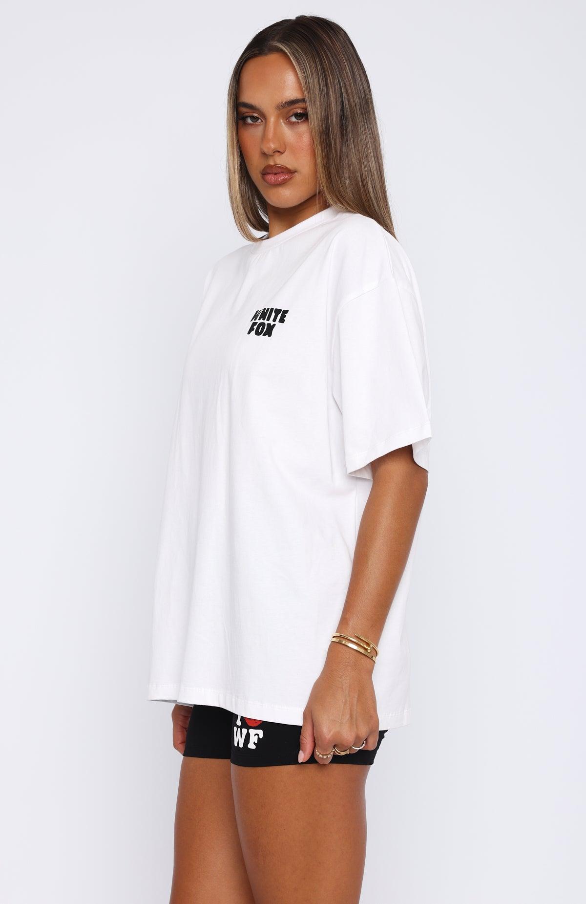Meet our closet must have. The 11Th Street City Of Dreams Oversized Tee Frosting features an oversized fit, slouch shoulders, high scooped neckline and print logo side front and centre back. Pair with your favourite 11th Street bottoms for a fit worthy insta post! 100% Cotton Mik is 171cm & wears a S/M Ash is 166cm & wears an S/M