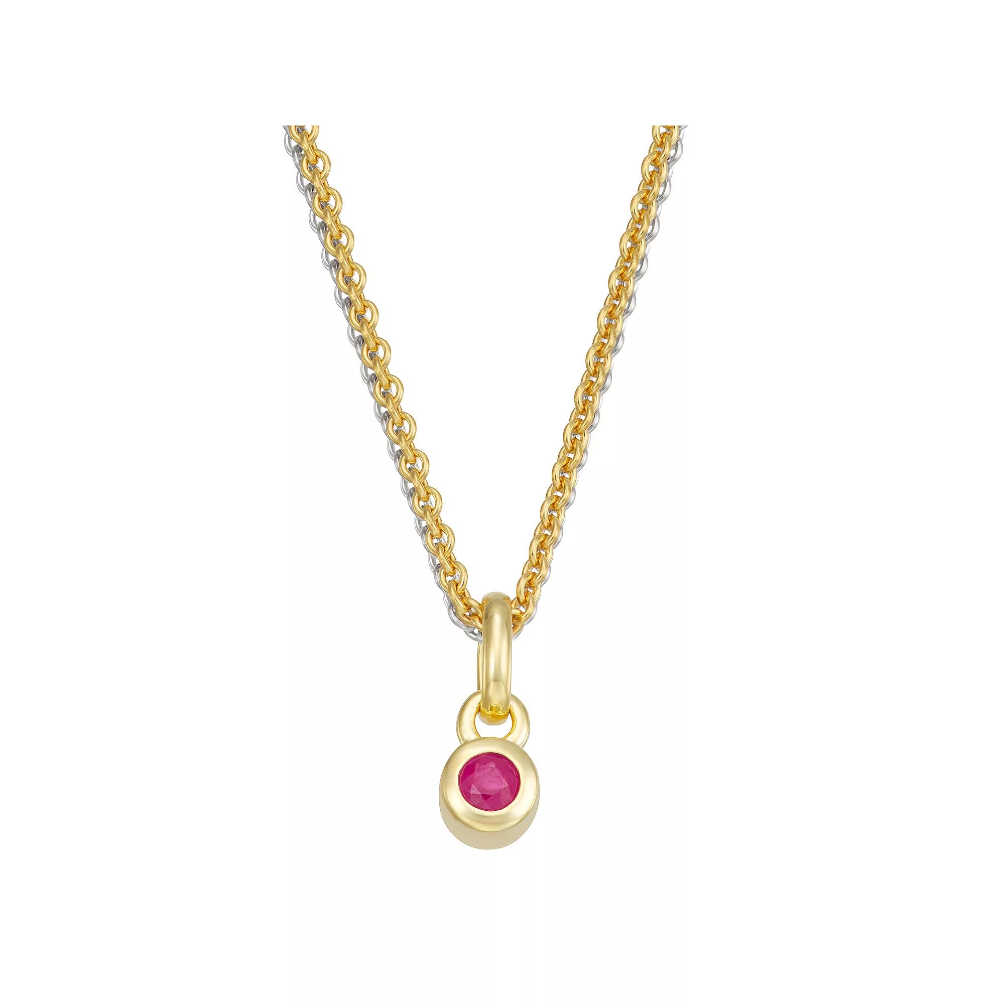 Add a stylish accent to any outfit in your wardrobe with this ruby charm double strand necklace. Click on this JEWELRY & WATCHES GUIDE to learn about fit, styles, materials and more! Add a stylish accent to any outfit in your wardrobe with this ruby charm double strand necklace. Click on this JEWELRY & WATCHES GUIDE to learn about fit, styles, materials and more! FEATURES Dimensions: 11.50 mm x 4.60 mm Chain length: 18 in. Chain type: box Clasp: lobster-claw Nickel free Metal: sterling silver Plating: 14k gold Finish: polished Packaging: dust bagSTONE DETAILS Stone type: ruby Stone size: 3 mm x 3 mm Shape: round Setting: bezel Gemstones may have been treated to enhance their appearance. Special care may be required. Please visit our Gemstone Treatment & Special Care Guide for more information. Size: 18. Color: Gold Tone. Gender: female. Age Group: adult. Material: Gold Over Sterling.