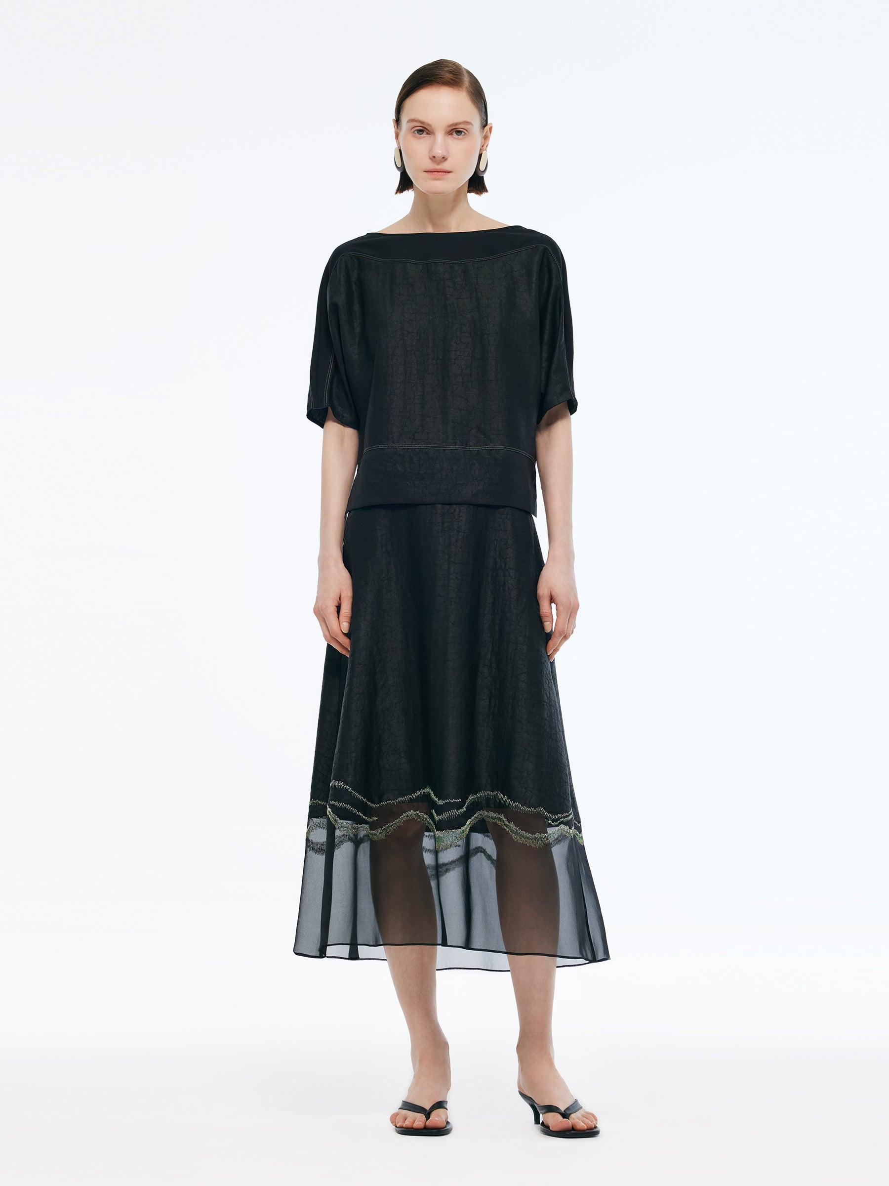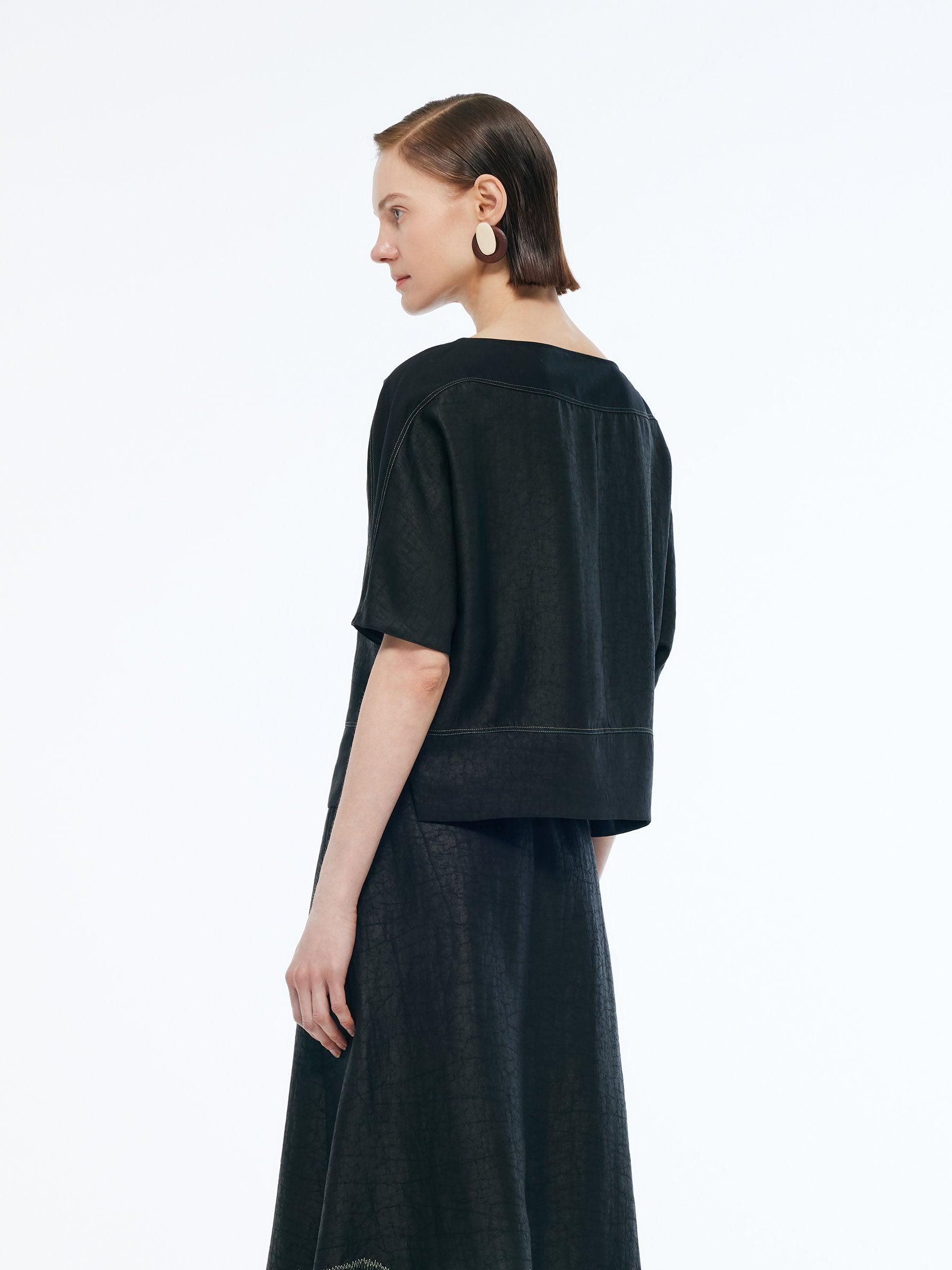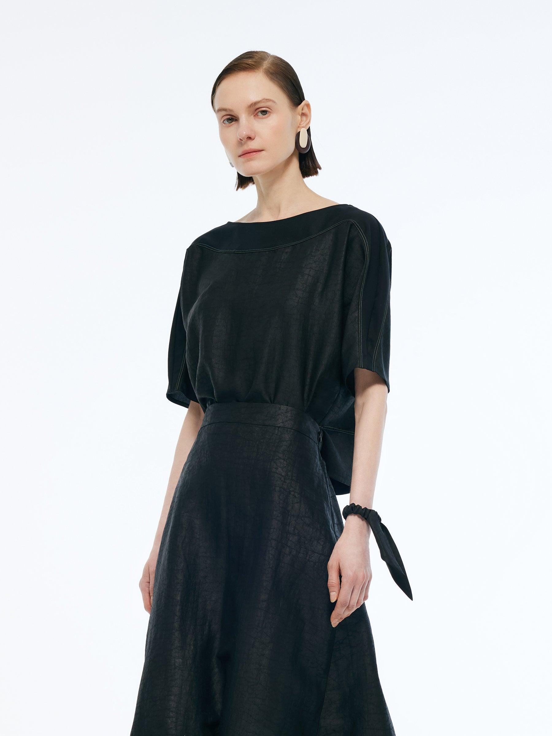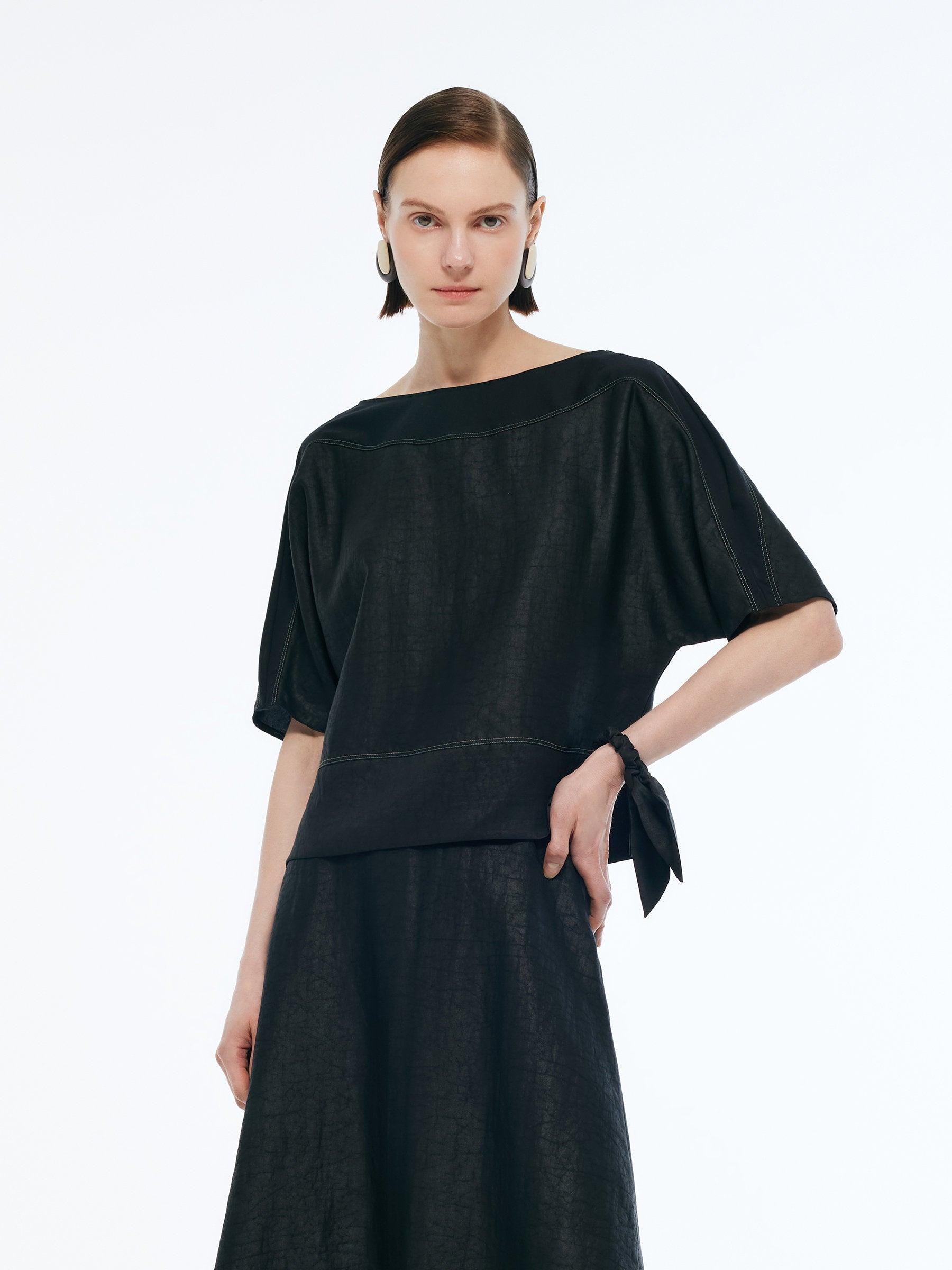 -18MM Xiang Yun Silk -With scrunchie -Skin-friendly Equal parts effortless and refined, this top is crafted from 18MM Xiang Yun Silk, offering breathability and moisture-wicking qualities, ideal for spring and summer. Patchwork elastic knit fabric at key movement areas enhances flexibility, while the sleek design fits