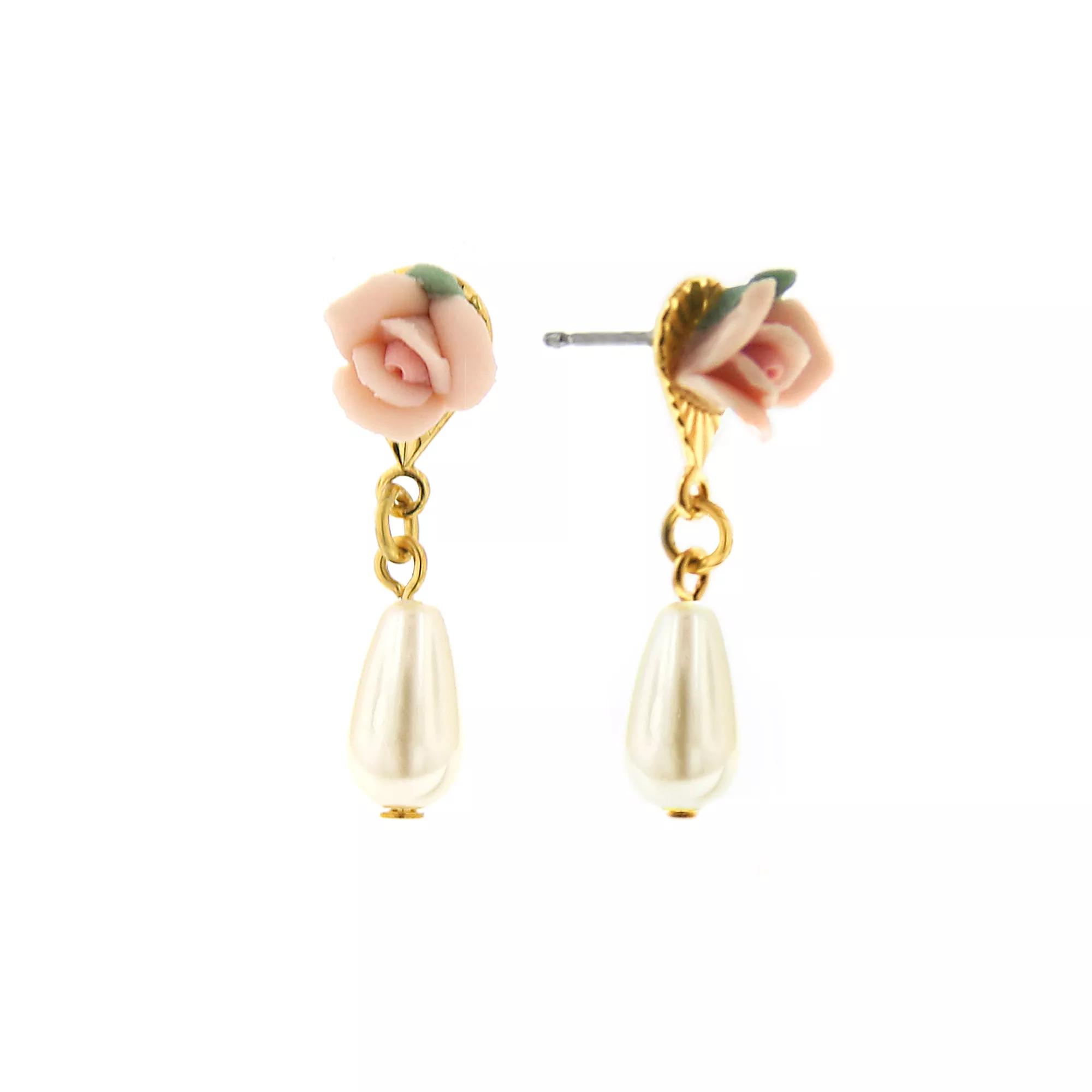 Pink porcelain floral accents provide sweet style. Simulatedpearls offer opulent elegance. Gold-tone finish shines on and on. Surgical steel post backings ensure a secure fit. Details: 1-in. length Pierced Gold tone Size: One Size. Gender: female. Age Group: adult.