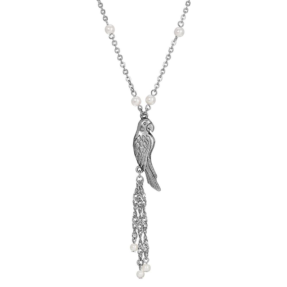 This 1928 Silver Tone Pewter Parrot Simulated Pearl Chain and Tassel Necklace adds a fabulous bird factor to your collection. This 1928 Silver Tone Pewter Parrot Simulated Pearl Chain and Tassel Necklace adds a fabulous bird factor to your collection. NECKLACE DETAILS Pendant length: 3.4 in. Chain length: 16 in. with 3 in. extender Clasp: lobster-claw Metal: alloy Plating: silver tone Finish: polished Material: acrylic Not appropriate for children 14 years old and younger. Size: One Size. Color: White. Gender: female. Age Group: adult.