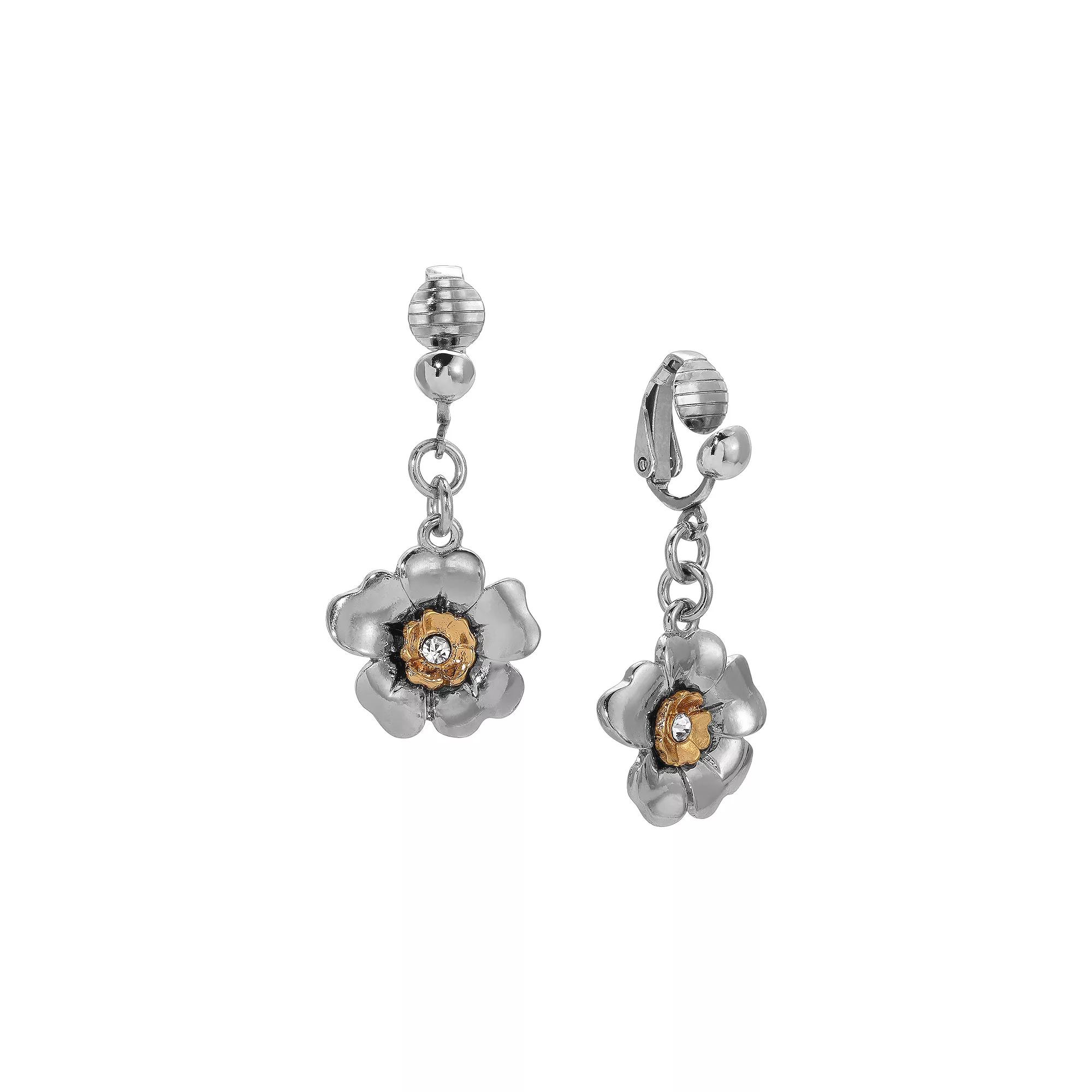 Accessorize in style with these 1928 Two Tone Crystal Center Flower Clip-On Earrings. Accessorize in style with these 1928 Two Tone Crystal Center Flower Clip-On Earrings. FEATURES Dimensions: 33 mm x 17 mm Backings: clip-on Nickel safe Metal: alloy Material: crystal Plating: gold tone, silver tone Finish: polished Not appropriate for children 14 years old and younger. Size: One Size. Color: Yellow. Gender: female. Age Group: adult.