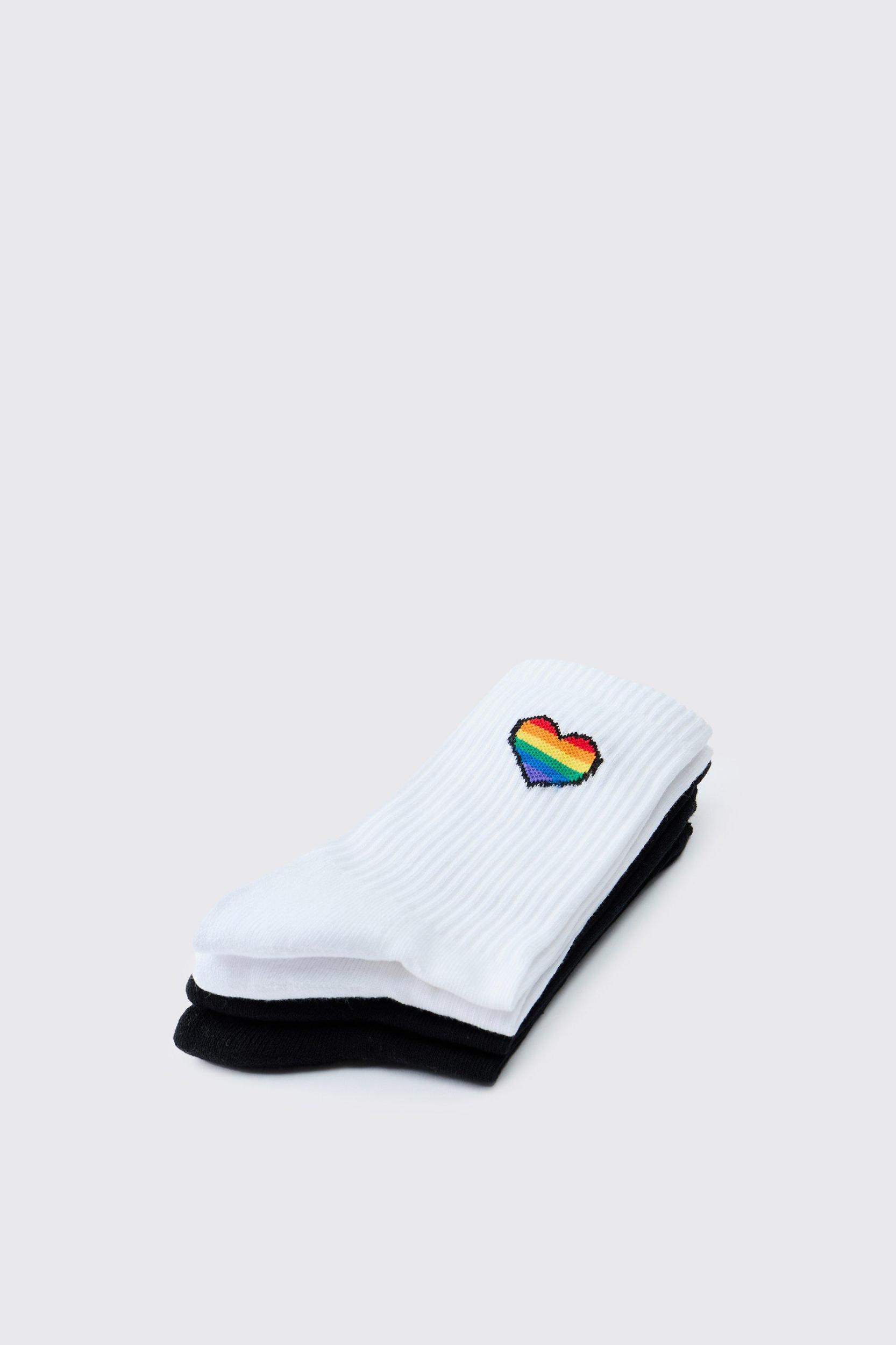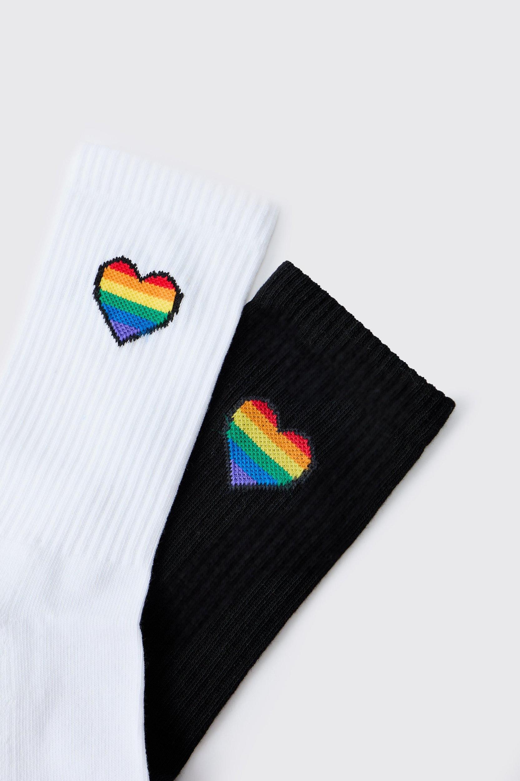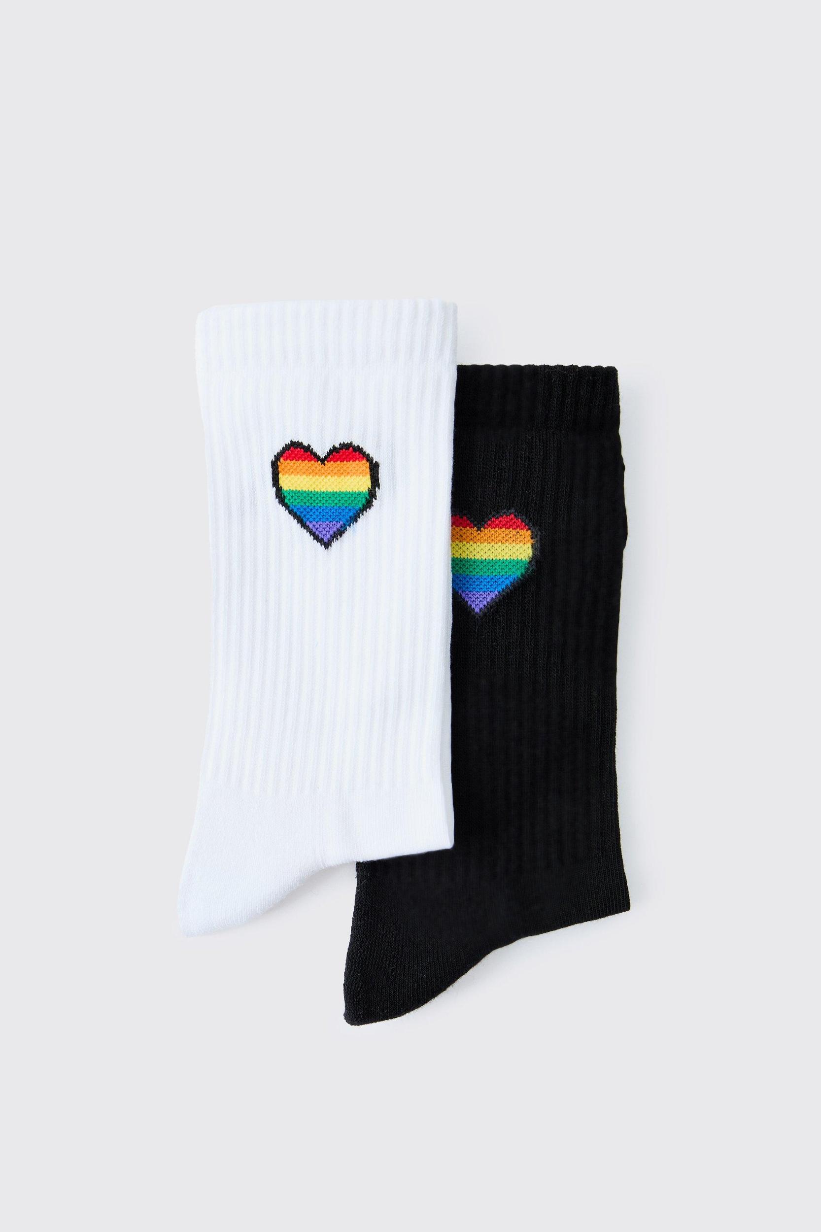 2 Pack Rainbow Heart Pride Socks | boohooMAN USA