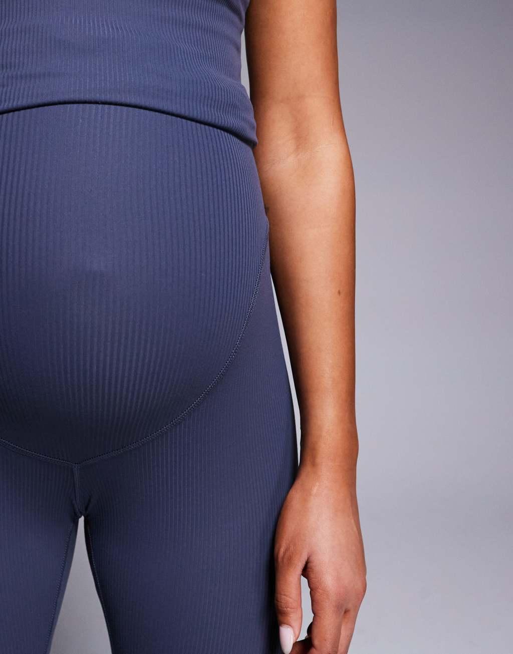 4505 Maternity soft touch rib high waist gym legging in blue gray
