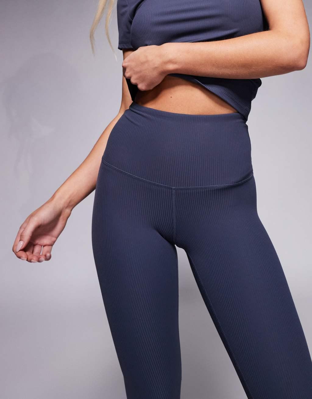 4505 Tall soft touch ribbed high waist gym leggings in blue gray