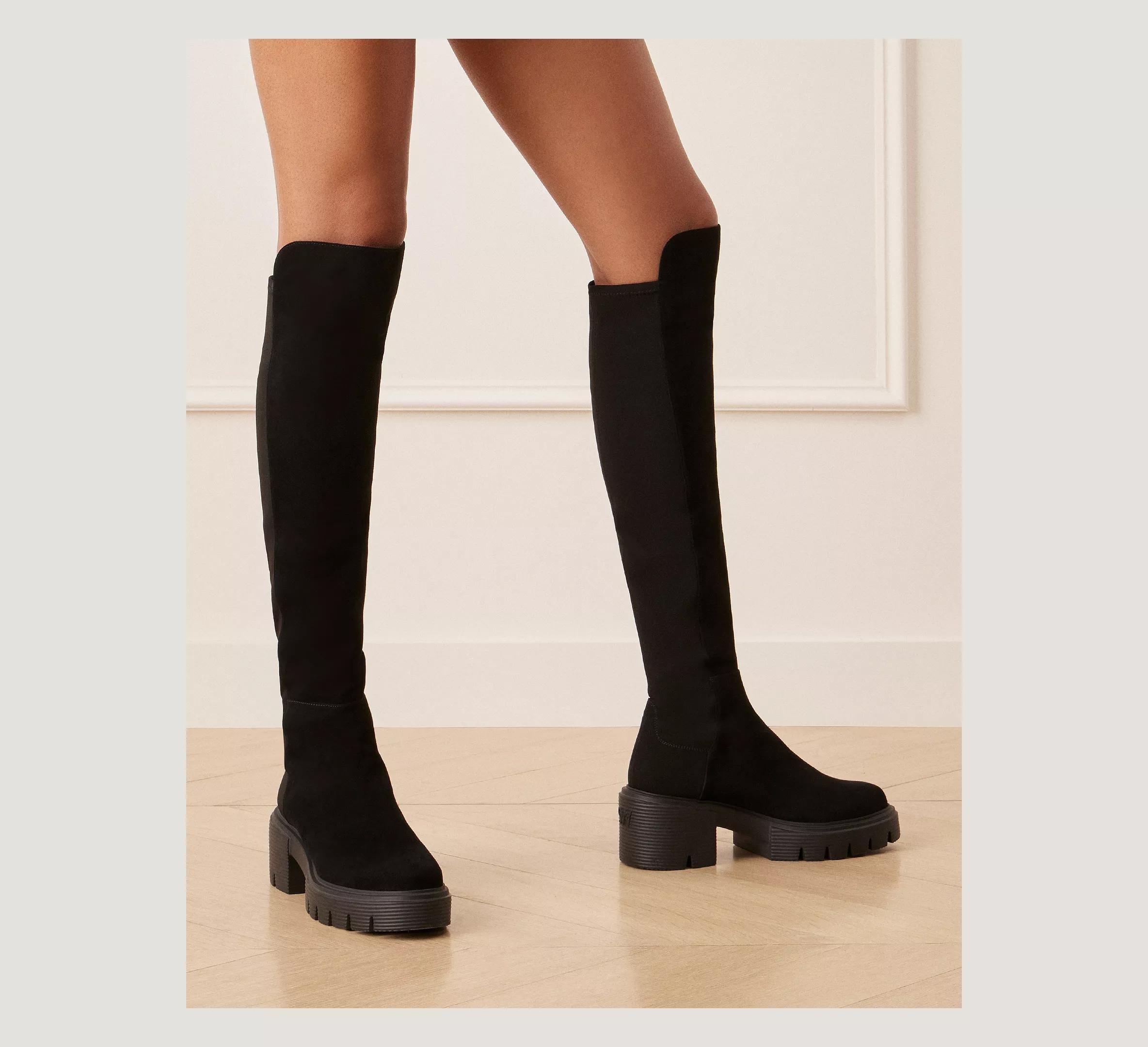 FEATURES BootWorld-renowned over-the-knee-designBlock heelRound toePull-on with stretch backIndustry-leading back-stretch construction