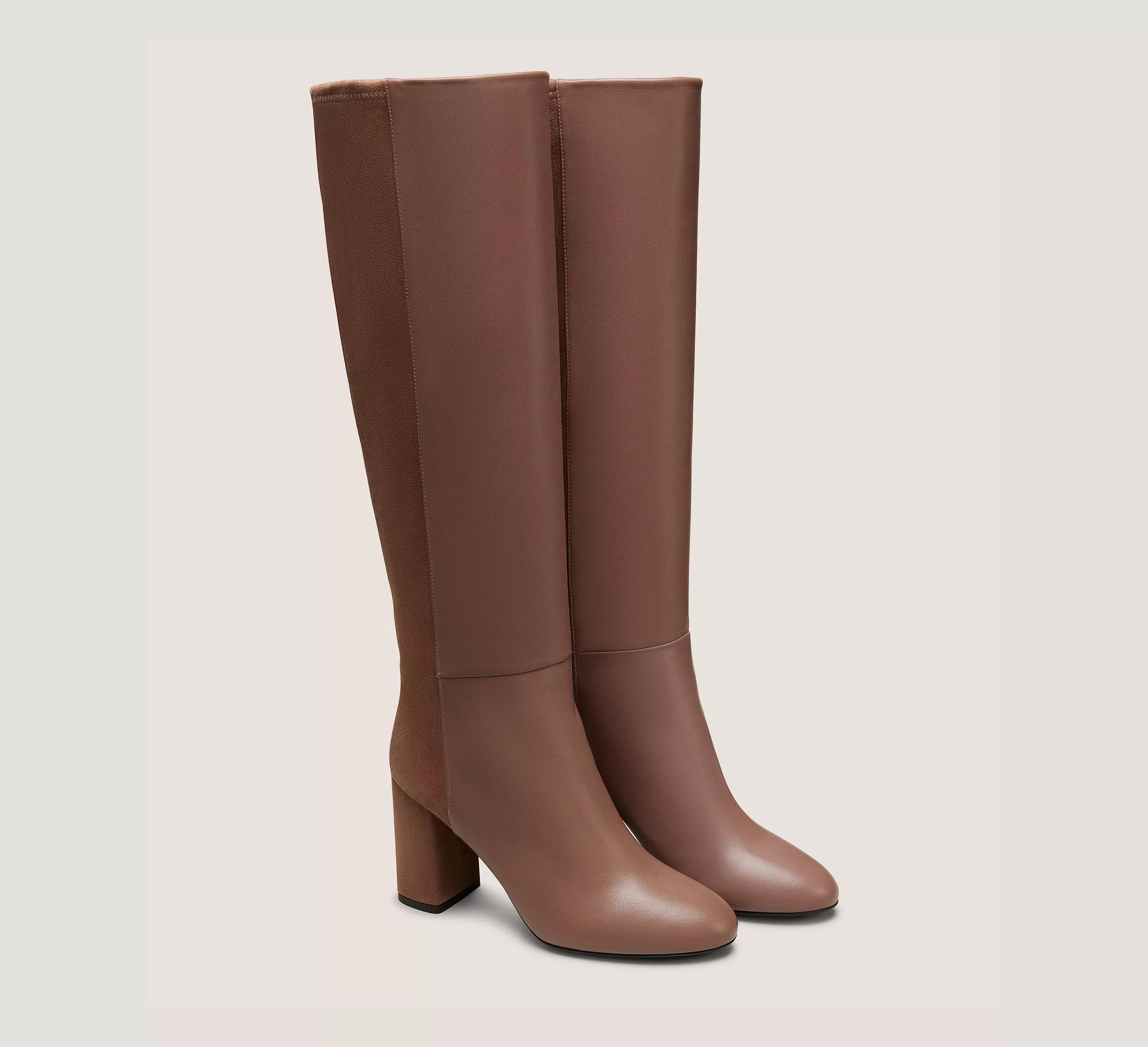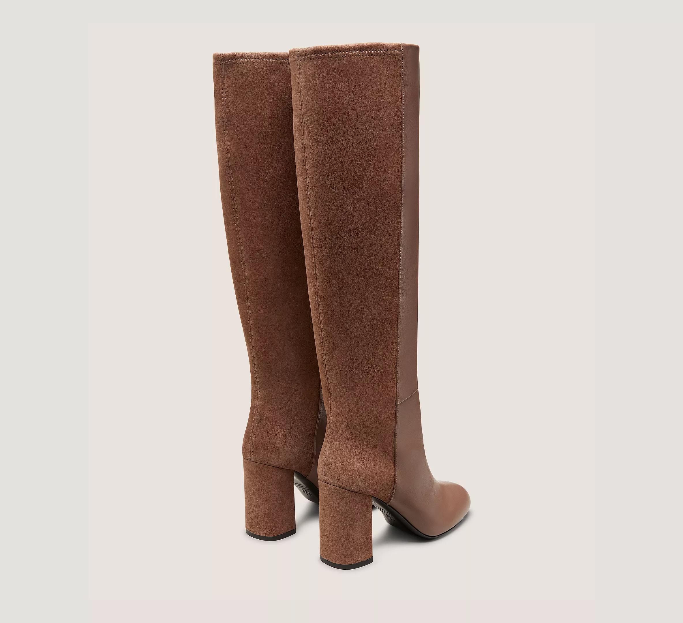 FEATURES BootKnee-highBlock heelAlmond toePull-onMixed-material design