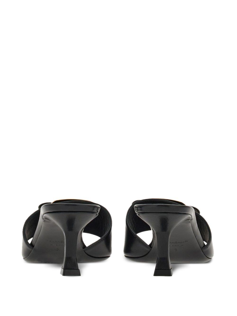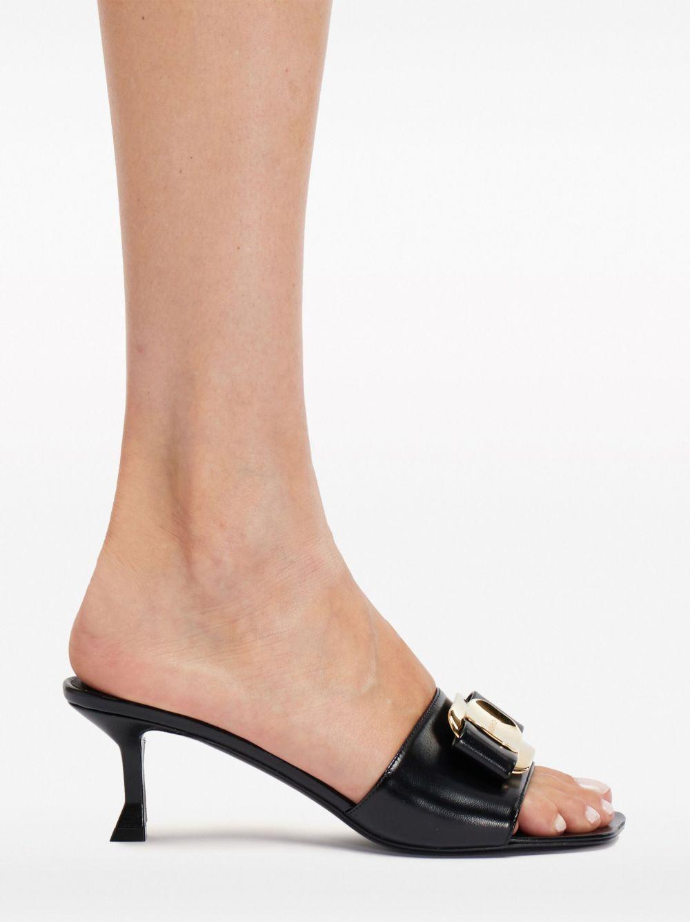 Ferragamo 55mm bow-detailing leather mules | Black | black | lambskin | gold-tone hardware | bow detailing | engraved logo | square open toe | slip-on style | branded leather insole | 55mm mid heel | leather sole | Lamb Skin/Lamb Skin | Heeled Sandals | Sandals | Heeled Mules | Mules | Shoes | Women