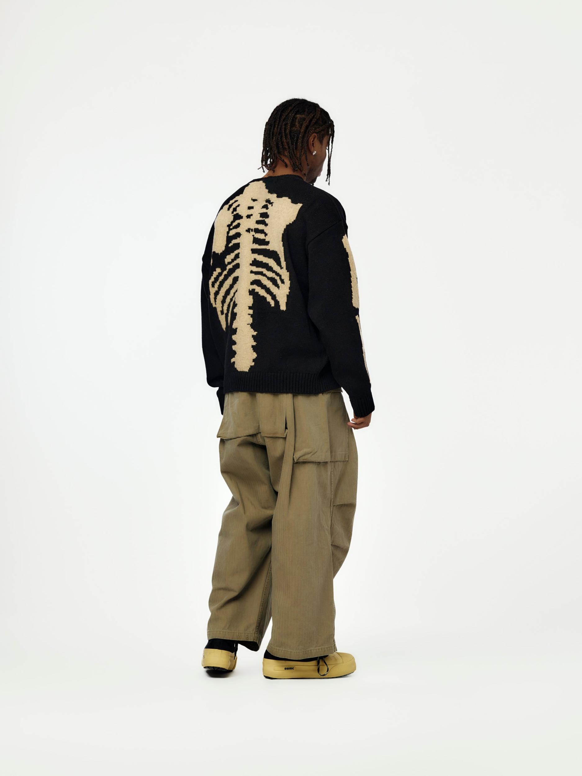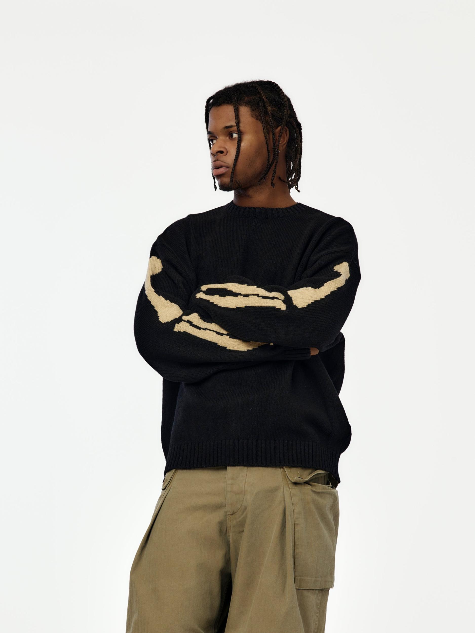 An icon in the KAPITAL universe, the 5G Wool BONE Crew Sweater delivers bold expression through meticulous knitwear. Crafted from heavy-gauge wool, the sweater features the brand’s unmistakable bone motif—equal parts playful and irreverent. Warm, substantial, and designed to last, it’s a statement layer rooted in craftsmanship and counterculture. Instantly recognizable, endlessly wearable. SKU: EK-1537KNA