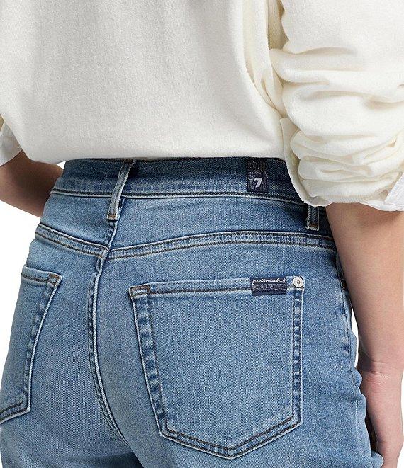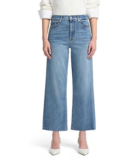 From 7 for all mankind, these jeans feature:Denim fabricationHigh riseWide leg fitRaw cut hem detailFront zipper closure5 pocket Approx. 26.5" inseam, 19" leg opening, 14.25" back rise, 10.75" front riseCotton/modal/elastomultiester/spandexMachine wash/line dry Imported.
