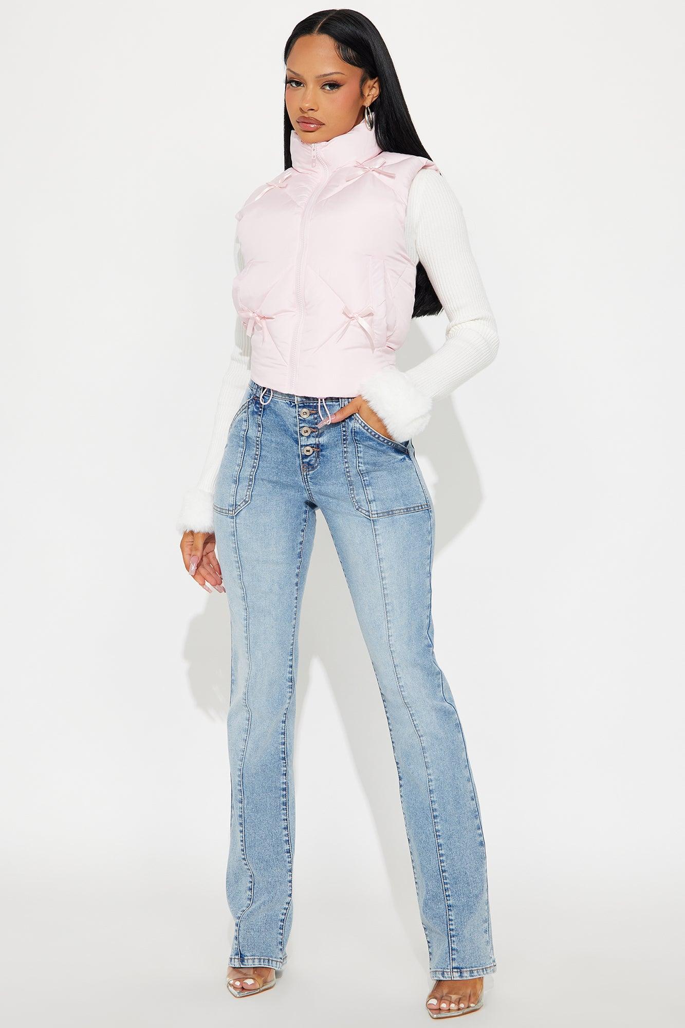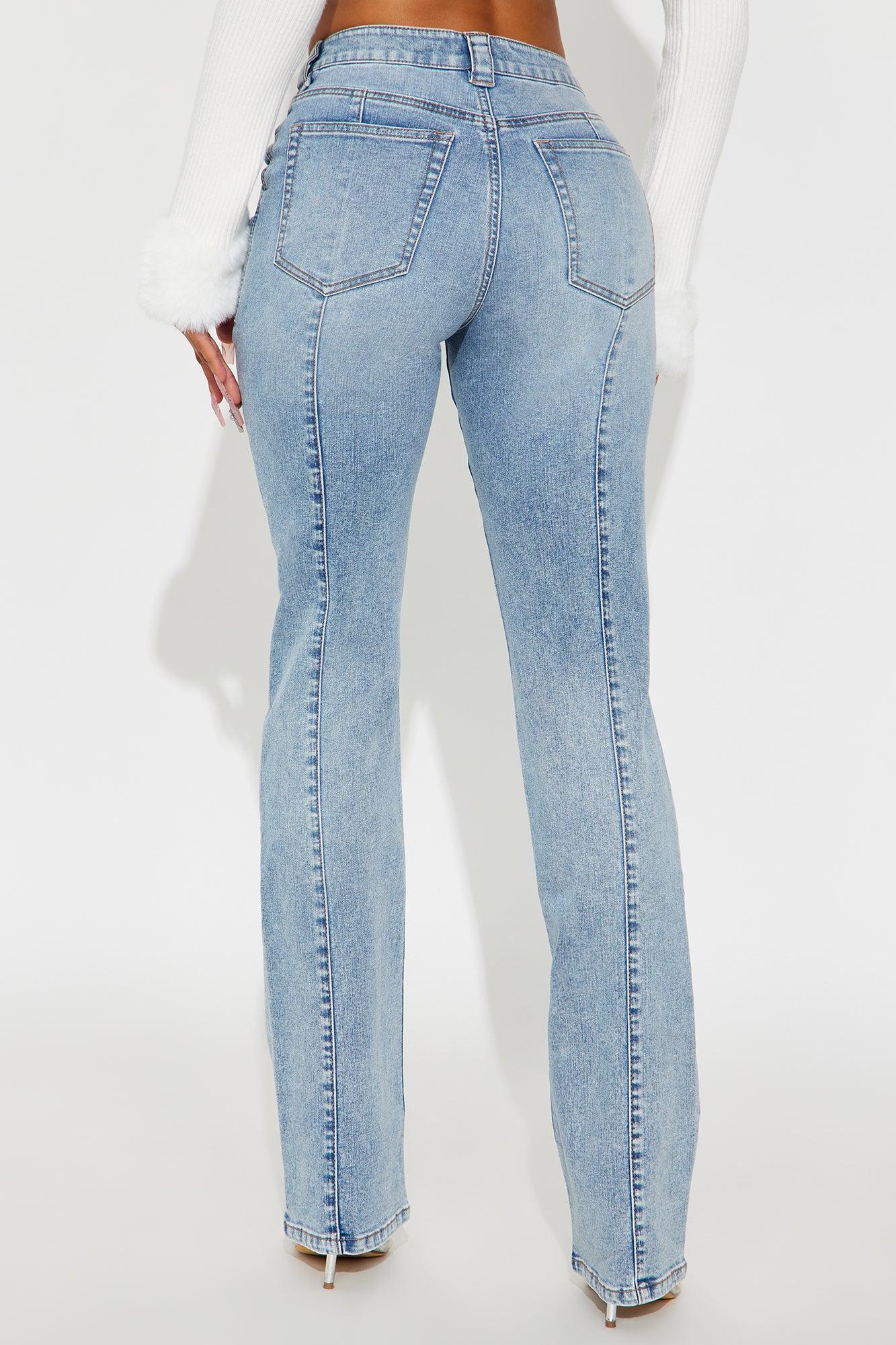 Available In Light Wash. Bootcut Jeans Pockets Seaming Exposed Buttons 9.5" Rise 34" Inseam Medium Stretch Disclaimer: Due To The Specialized Wash Process, Each Garment Is Unique. Self : 74% Cotton 23% Polyester 32% Rayon 1% Spandex Imported California Proposition 65WARNING: Cancer and Reproductive Harm - www.P65Warnings.ca.gov.