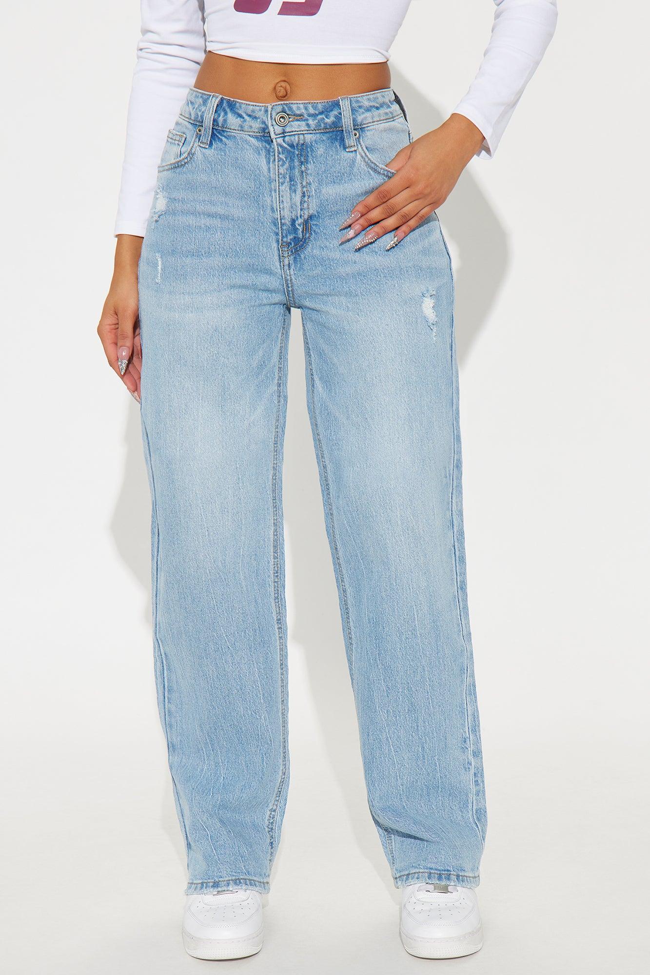 Available In Light Wash. Straight Leg Jean 5 Pocket Light Destruction 11" Rise 32" Inseam Medium Stretch Disclaimer Due To The Specialized Wash Process, Each Garment Is Unique. 99% Cotton 1% Spandex Imported California Proposition 65WARNING: Cancer and Reproductive Harm - www.P65Warnings.ca.gov.