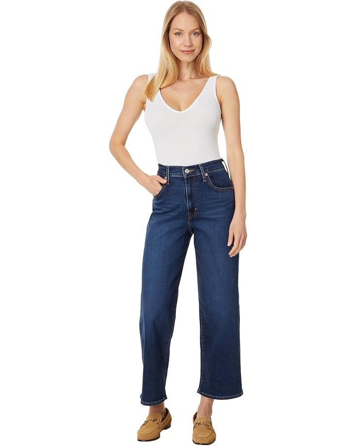 Feel free while moving outdoors from morning to night wearing Levi's® Premium High-Rise Wide Leg jeans. It has flattering high-rise waist, and waistband with loops. A loose fit, dark fabric wash, and classic five pockets with branding patch at the back waistband; make the jeans comfortable for daily life. It has front zip-fly and button closure. Crafted with a hint of stretch, the jeans is finished with ultra-modern wide leg.