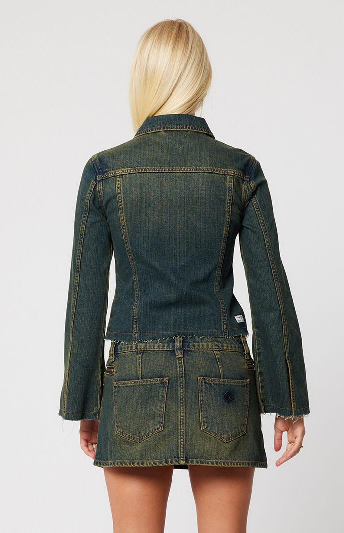 The 99 Xena Low Rise Denim Mini Skirt from ABRAND is your go-to for ultimate '90s and Y2K vibes. Designed with a low-rise waist, a leg-baring 29cm length, and a dark indigo wash with a bright yellow tint, this edgy mini features scraping details, dart and zip accents, dark tan stitching, and copper hardware—perfect for pairing with a white tank, leather jacket, and high-rise boots for a bold weekend look.