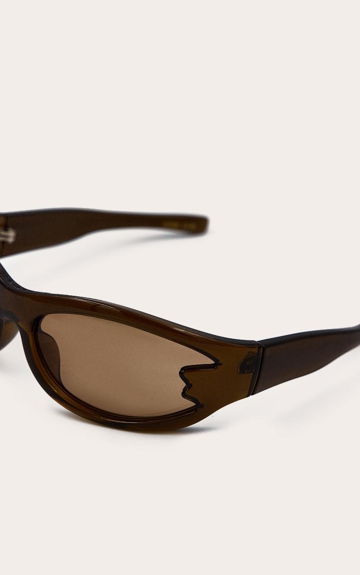 PRODUCT DESCRIPTION UV Protection Not for protection against direct sunlight. Non-prescription sunglasses. Not for protection against artificial light sources such as solaria. Not for use as eye protection against mechanical impact. Not suitable for night driving. Do not use abrasive detergents or sprays. Wipe clean only.p]:!mb-4inch>Brand: PrettyLittleThingCategory: AccessoriesProduct type: Branded SunglassesColor: BrownOccasion: Day