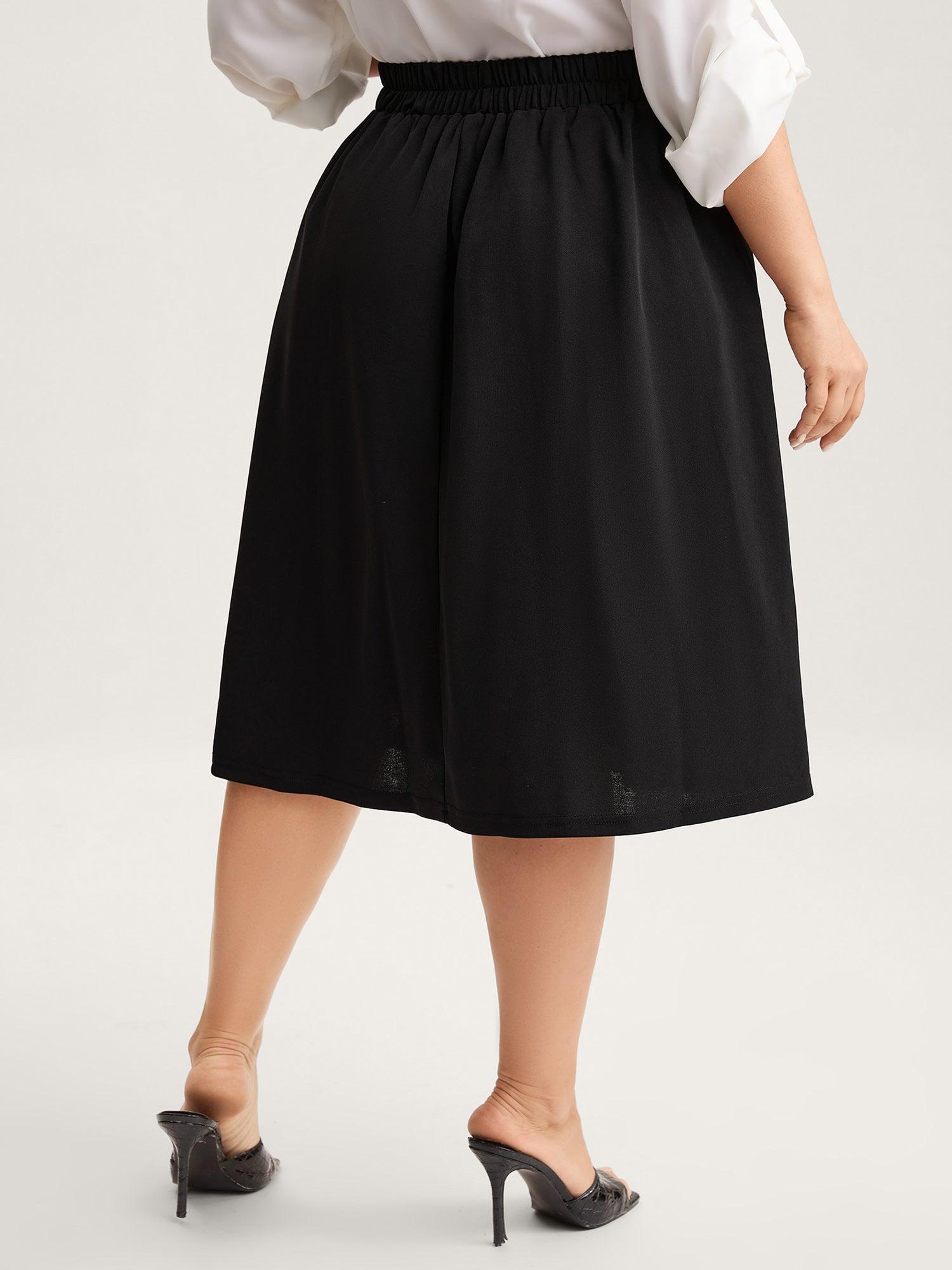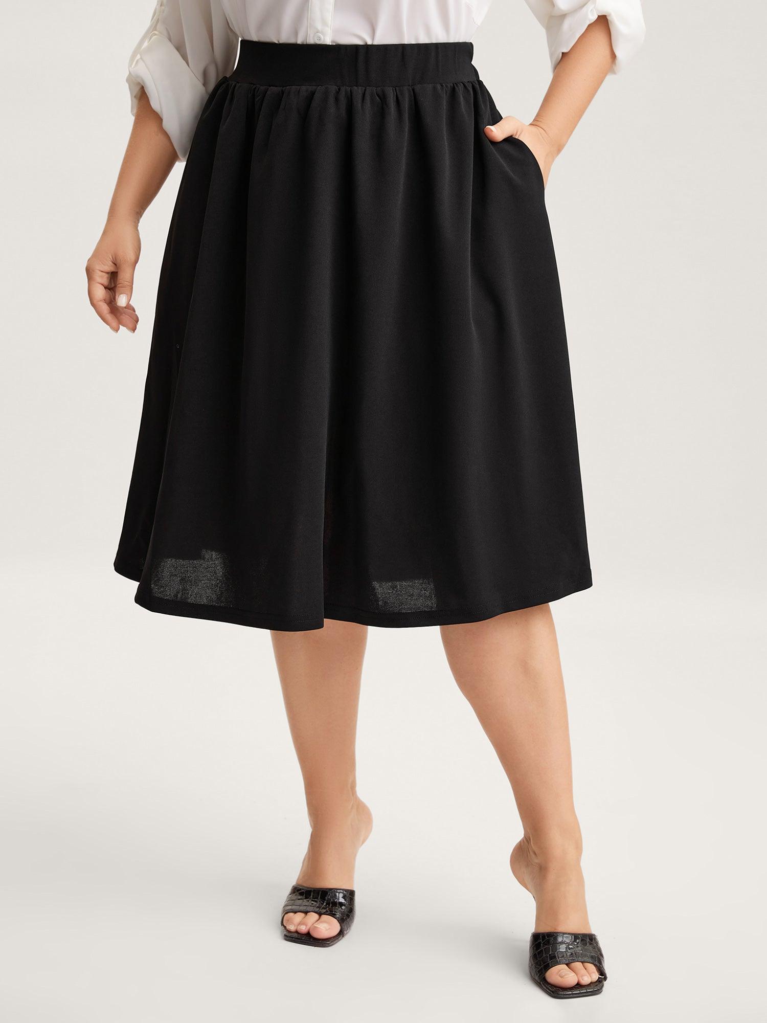 A-Line Solid Pleated Midi Skirt Female