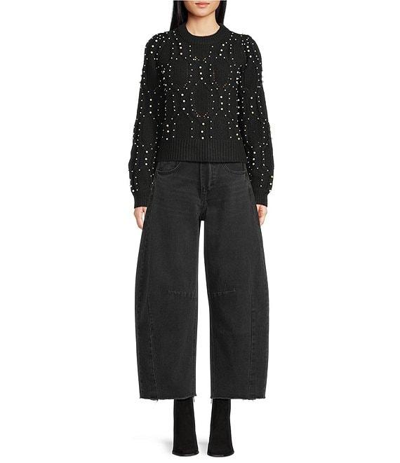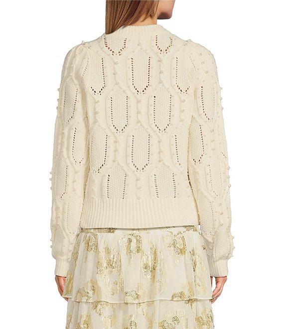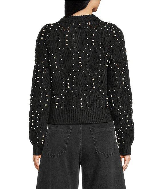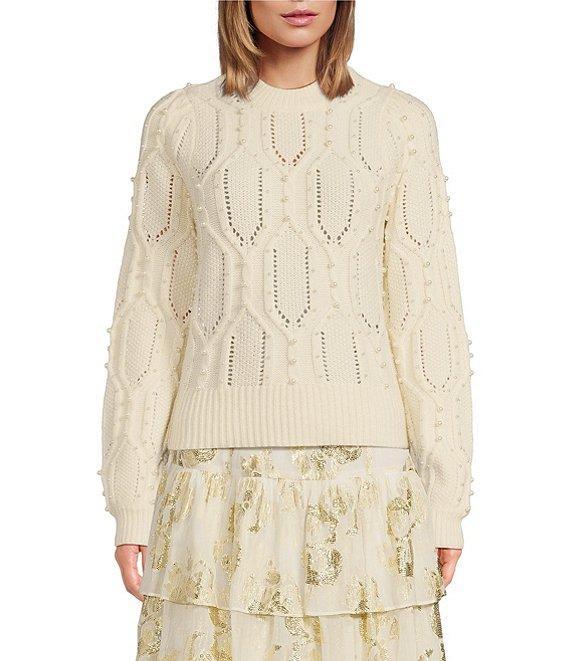 From A Loves A, this sweater features: Wool blend fabrication Beaded pearl detail Crew neckline Pullover construction Long sleeves Ribbed cuff Sweater silhouette Classic fit Average length Approx. 20.5" HPS in length Polyester/acrylic/wool Turn sweater inside out prior to wash/machine wash on cold cycle separately/lay flat to dry and reshape/use cool iron if needed. Imported. Dillard's Exclusive
