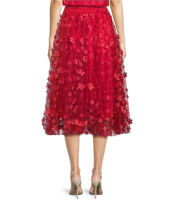 Abbey Glass Sue Sheer Tulle Ribbon Bow Tie A-Line Midi Skirt