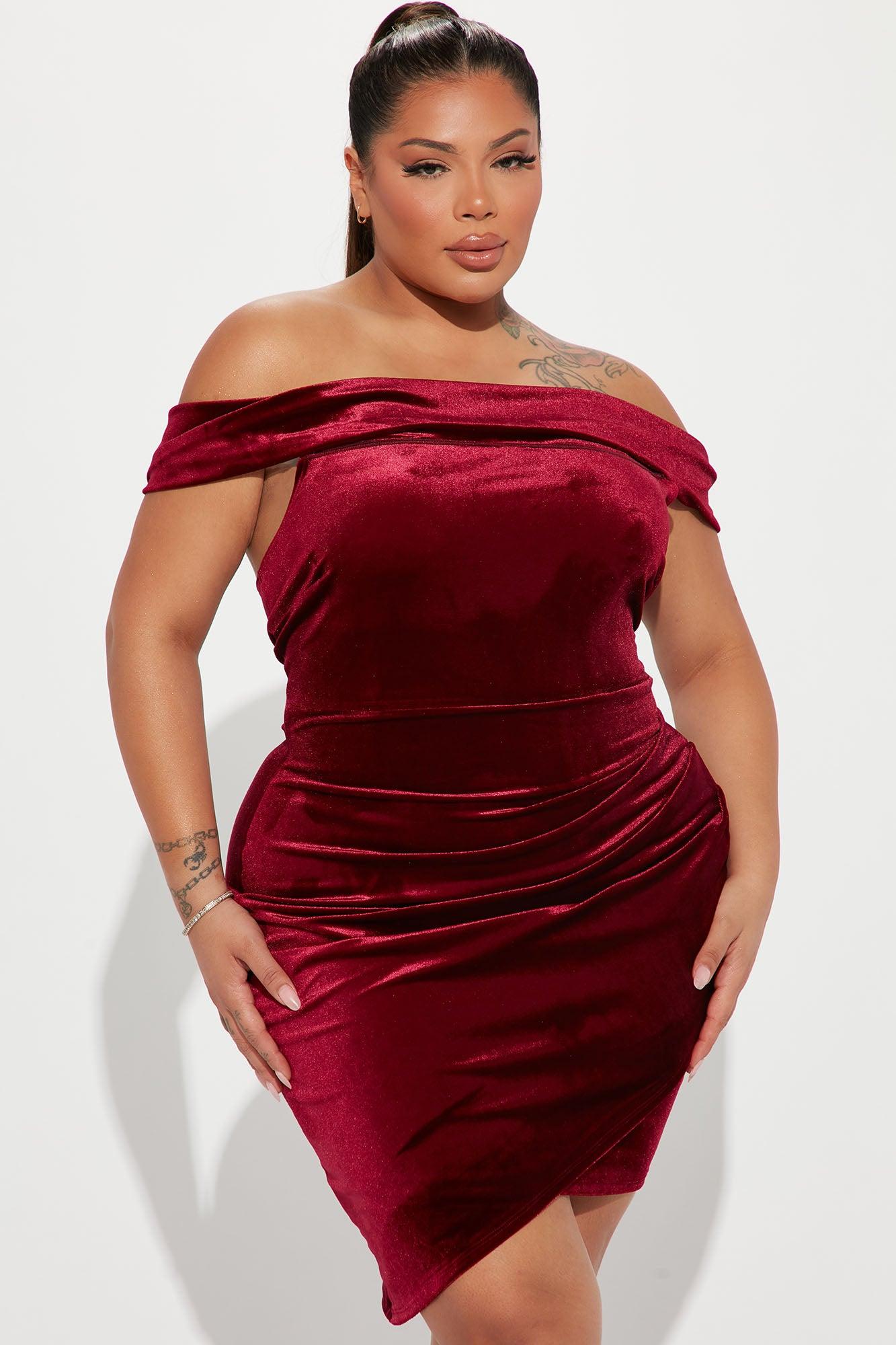 Available In Burgundy. Mini Velvet Dress Off Shoulder Stretch 92% Polyester 8% Spandex Imported