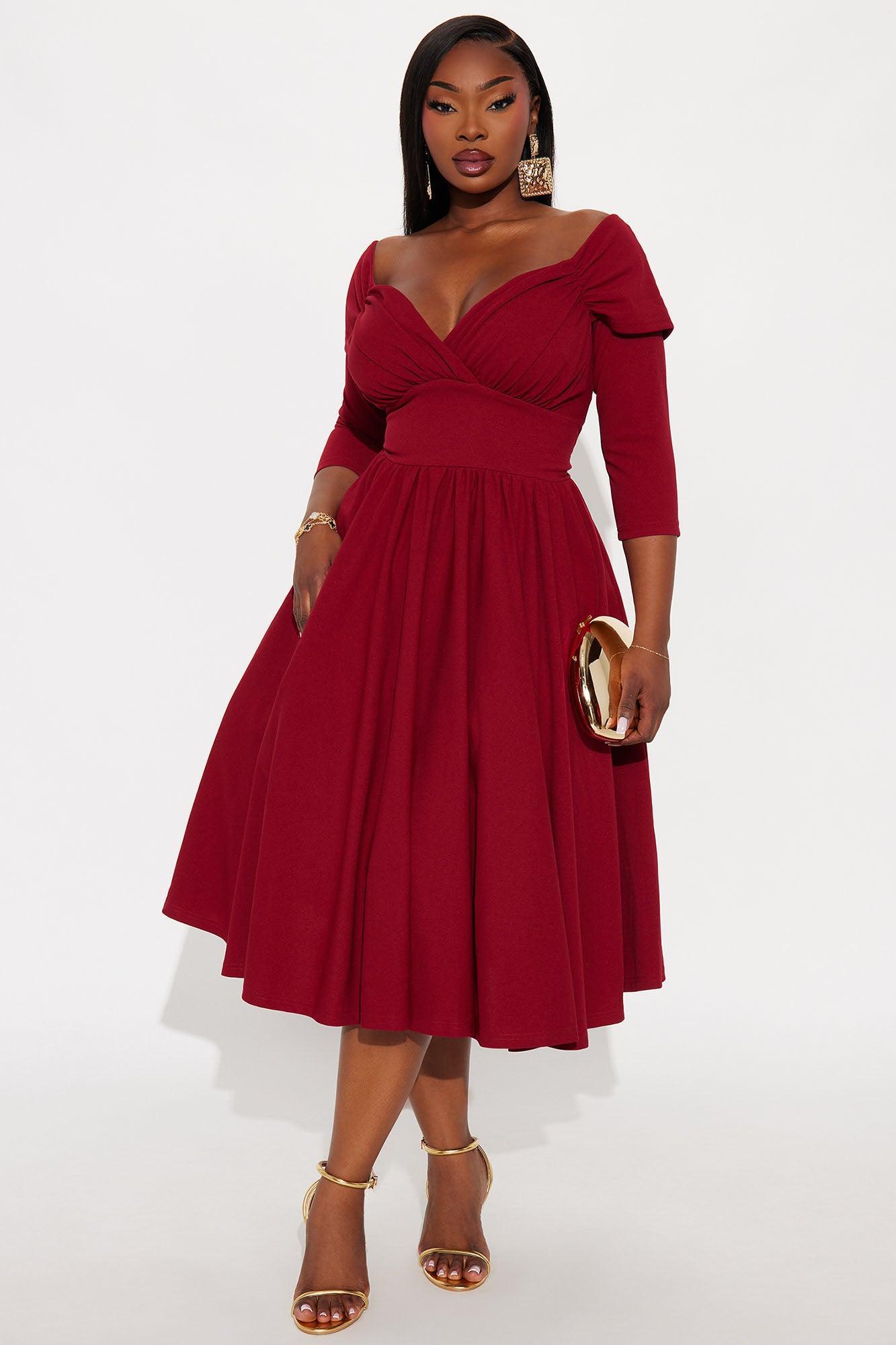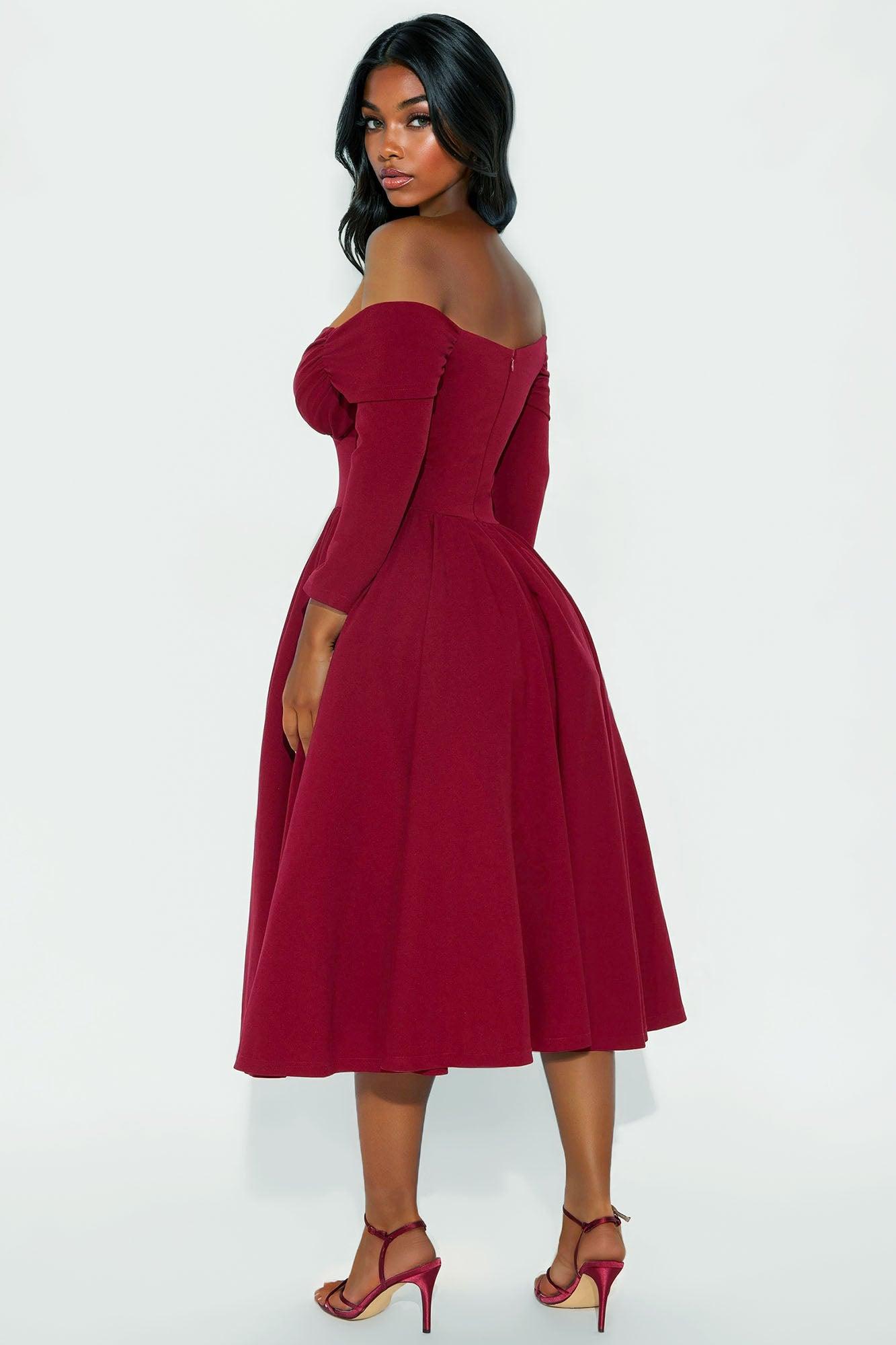 Abby Off Shoulder Crepe Knit Midi Dress - Wine Female