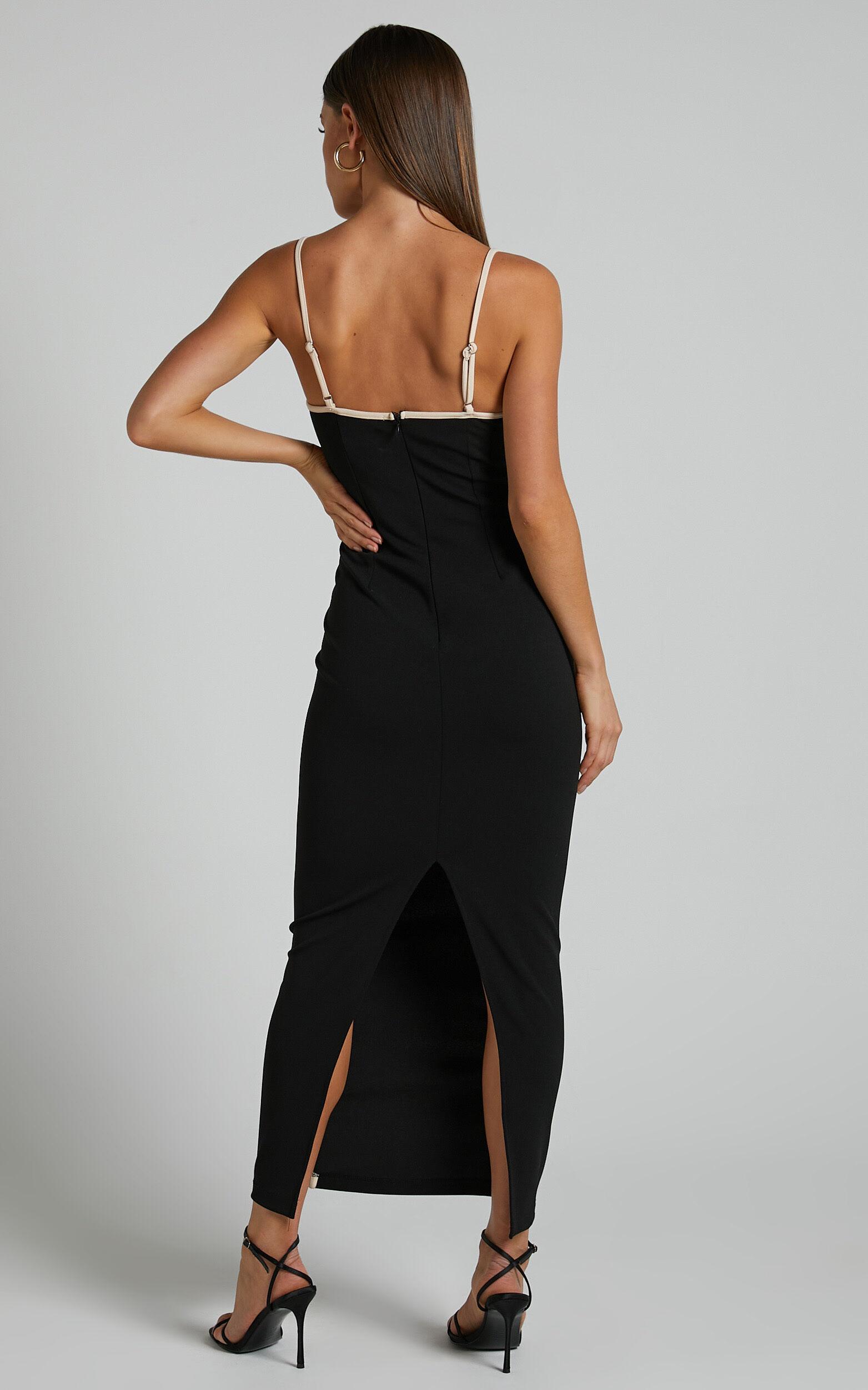 'Hey, gorgeous! Get ready to slay in our Abegaille Bodycon Midi Dress In Black. This sleeveless stunner is perfect for any formal occasion or party where you want to turn heads. Made with a cotton blend, this bodycon dress flatters your curves and feels comfortable all night long. The midi length adds a touch of sophistication while the black hue keeps it classic and chic. Trust us, you'll be the belle of the ball in this little number. Shop now and thank us later!'