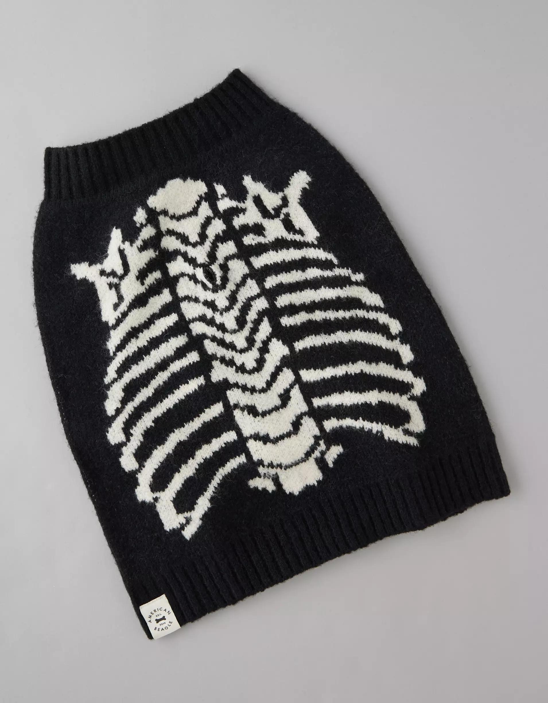 A paws-itively adorable sweater featuring a skeleton dog design.