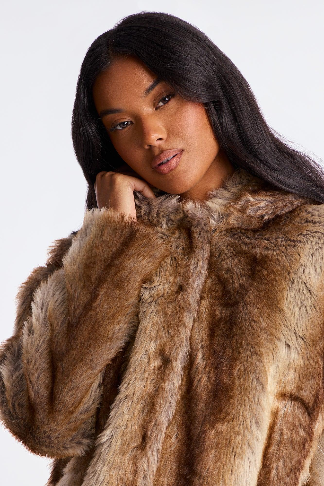Available In Brown/combo. Trench Coat Hooded Long Sleeve Faux Fur Two Toned Fully Lined Self Faux Fur: 60% Acrylic 40% Polyester Lining: 100% Polyester Imported California Proposition 65WARNING: Cancer and Reproductive Harm - www.P65Warnings.ca.gov.
