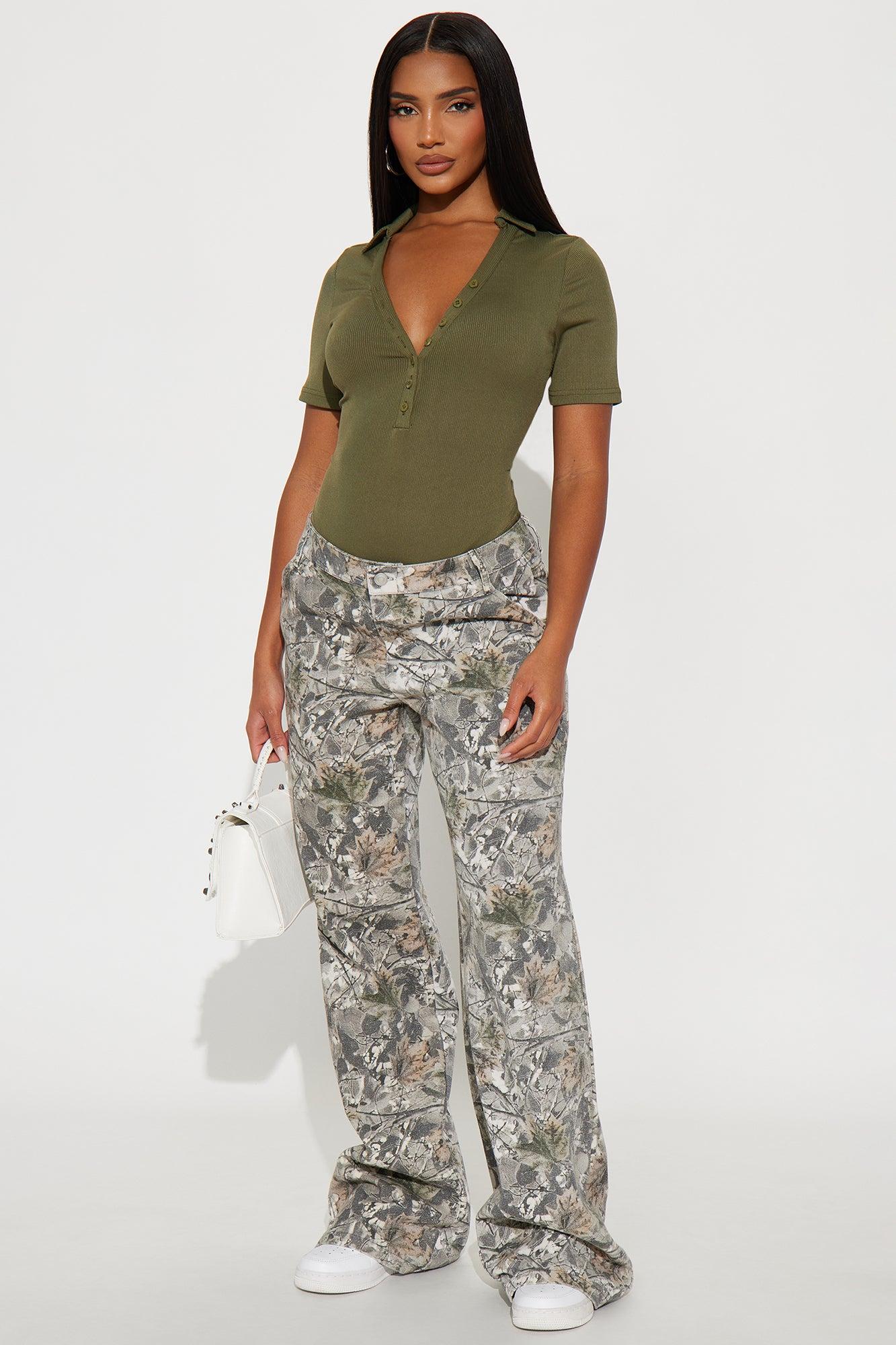 Adalee Short Sleeve Ribbed Bodysuit - Olive Female