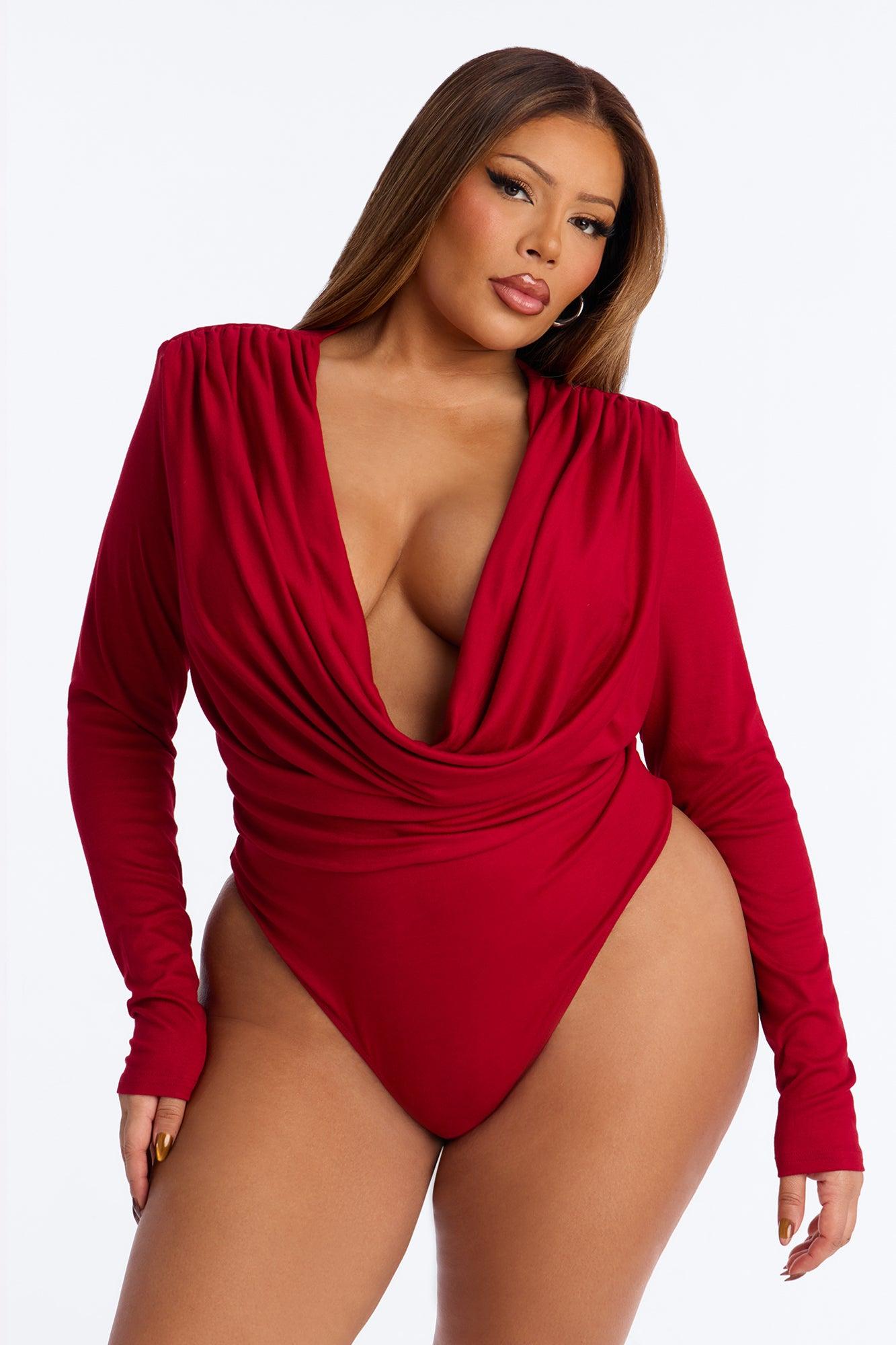 Adele Cowl Neck Long Sleeve Bodysuit - Red Female