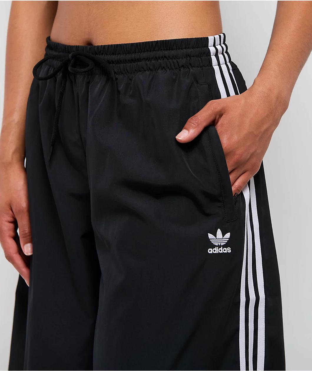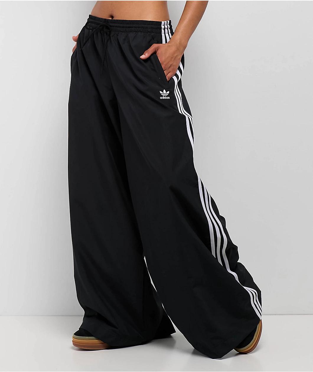 Redefine the meaning of comfort with the Oversized, wide-leg track pants from adidas, featured in a classic black color scheme with embroidered white 3-Stripe detailing on the side seams for an updated, iconic look. Drapey, flowy and lightweight, the