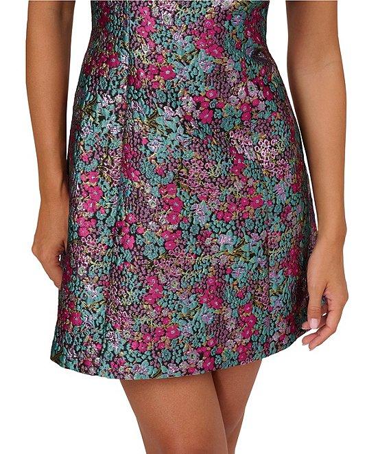 From Adrianna by Adrianna Papell, this dress features: Jacquard fabrication Fit & flare silhouette Abstract motif Strapless with split v neckline Sleeveless Zip back closure Lined Approx. 35" length Polyester/metallic/nylon Dry clean Imported.
