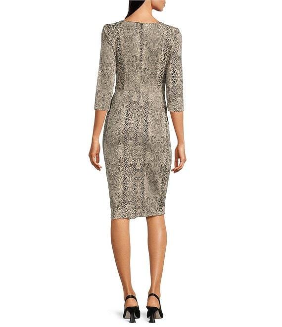 From Adriana Papell, this dress features: Crepe fabrication Boat neckline 3/4 sleeves Front bodice waist tie Animal print Lined Back zipper closure Approx. 43" from high point shoulder Polyester/elastane Dry clean only Imported.