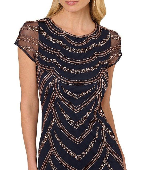 Adrianna Papell Cap Sleeve Boat Neck Beaded Dress