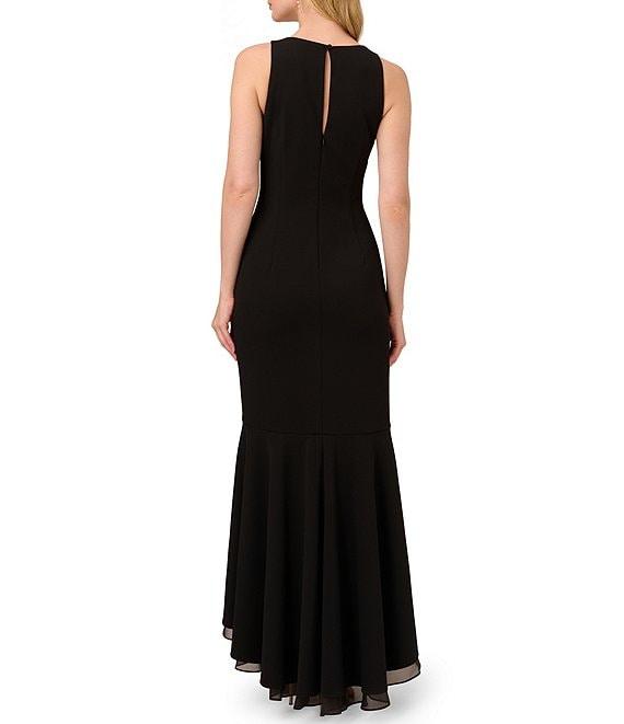 Adrianna Papell Crew Neck Sleeveless Cascading Ruffle High-Low Dress