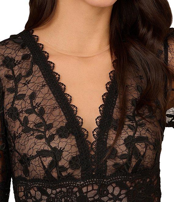 Adrianna Papell Floral Lace Embroidery V-Neck Short Sleeve Tiered Mini A-Line Dress