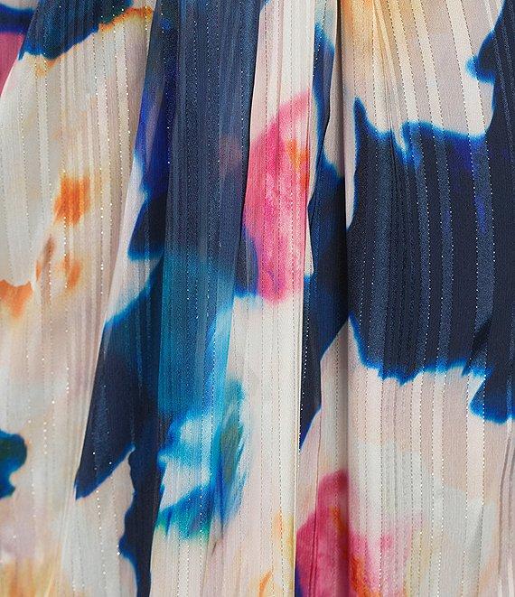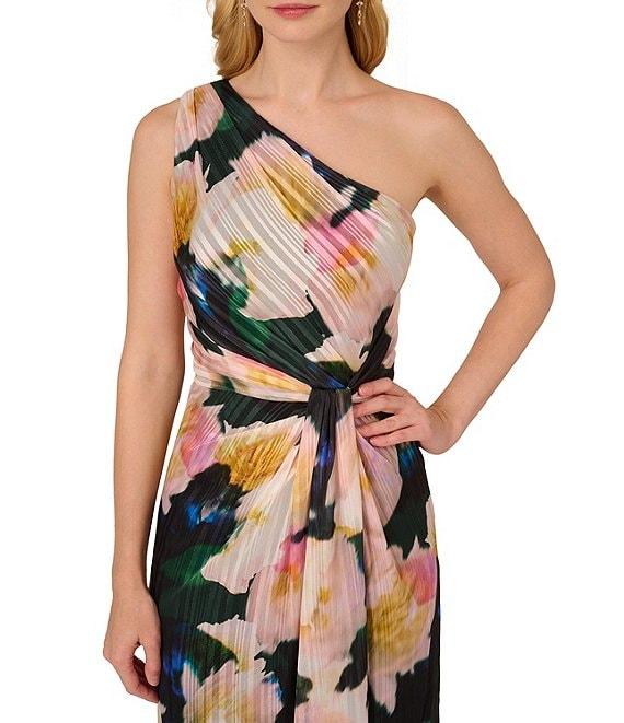 Adrianna Papell Floral Metallic Satin One Shoulder Sleeveless Twist Waist Gown