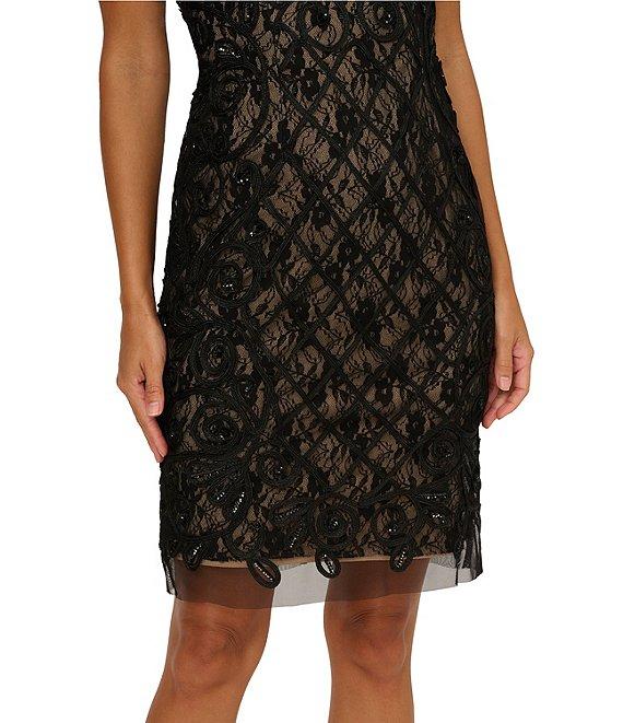 Adrianna Papell Soutache Beaded Mesh V-Neck Sleeveless Sheath Dress