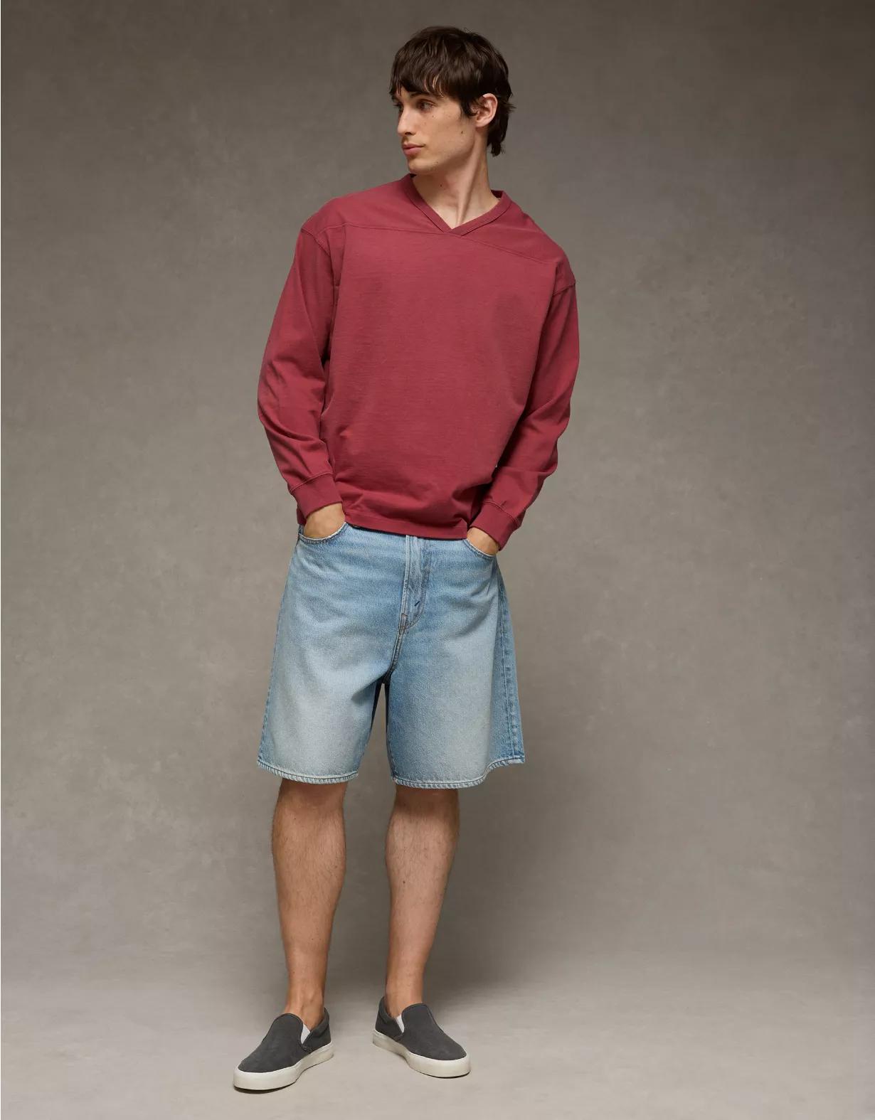 AE Boxy Long-Sleeve V-Neck T-Shirt