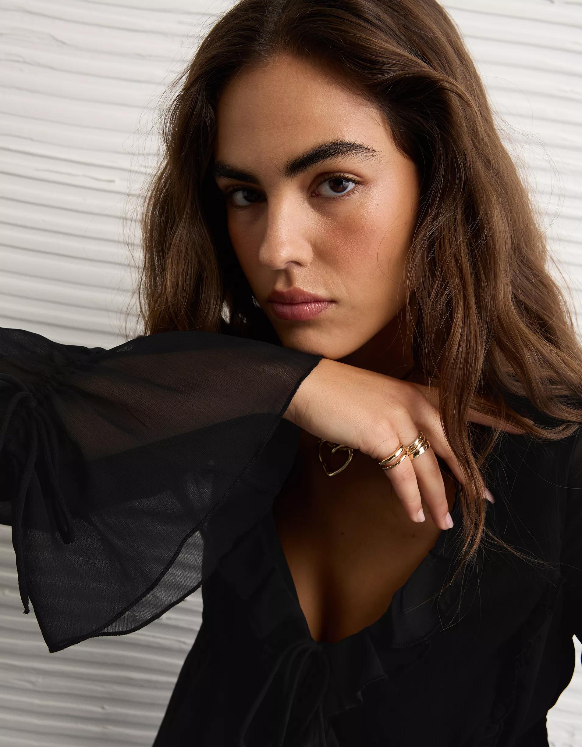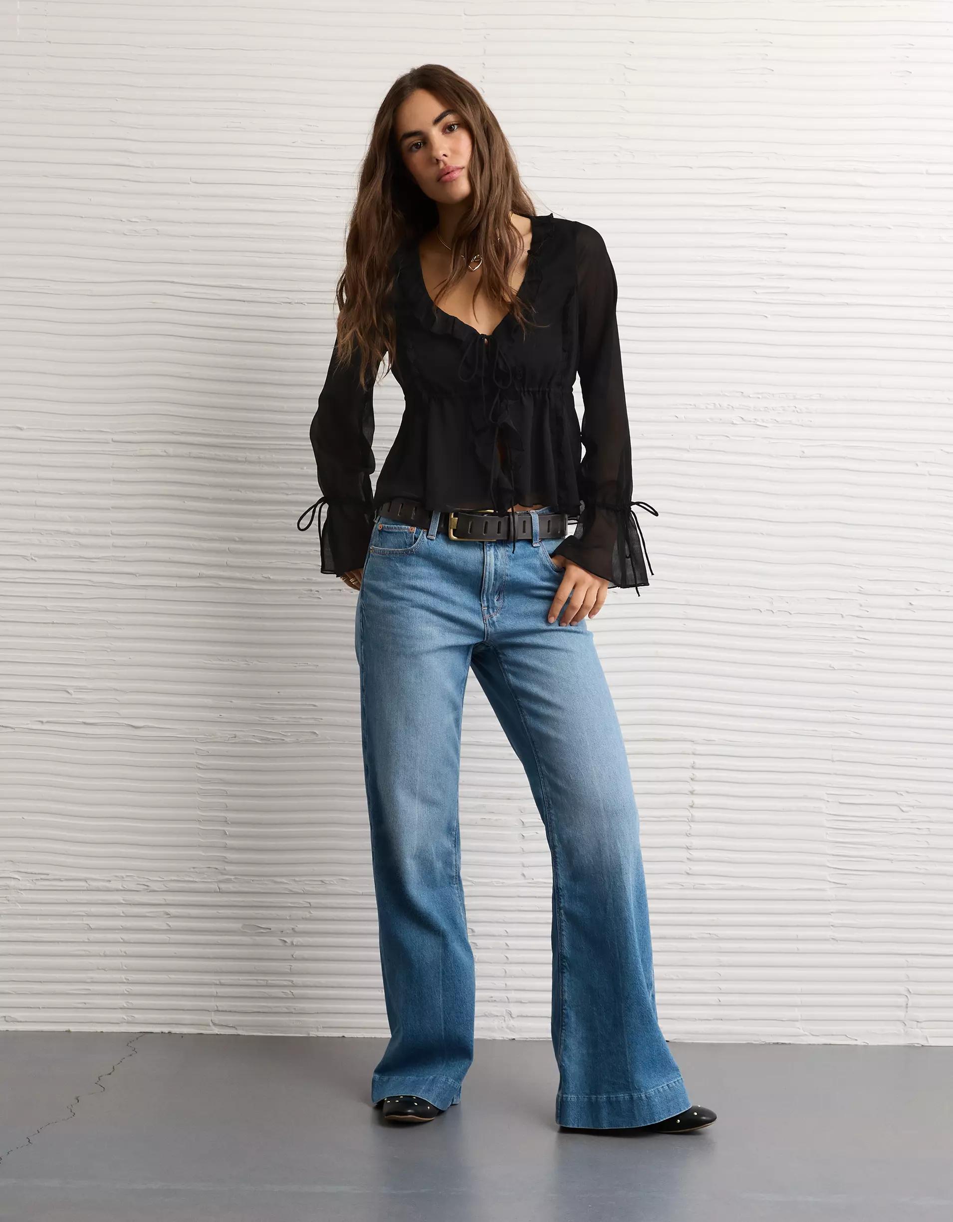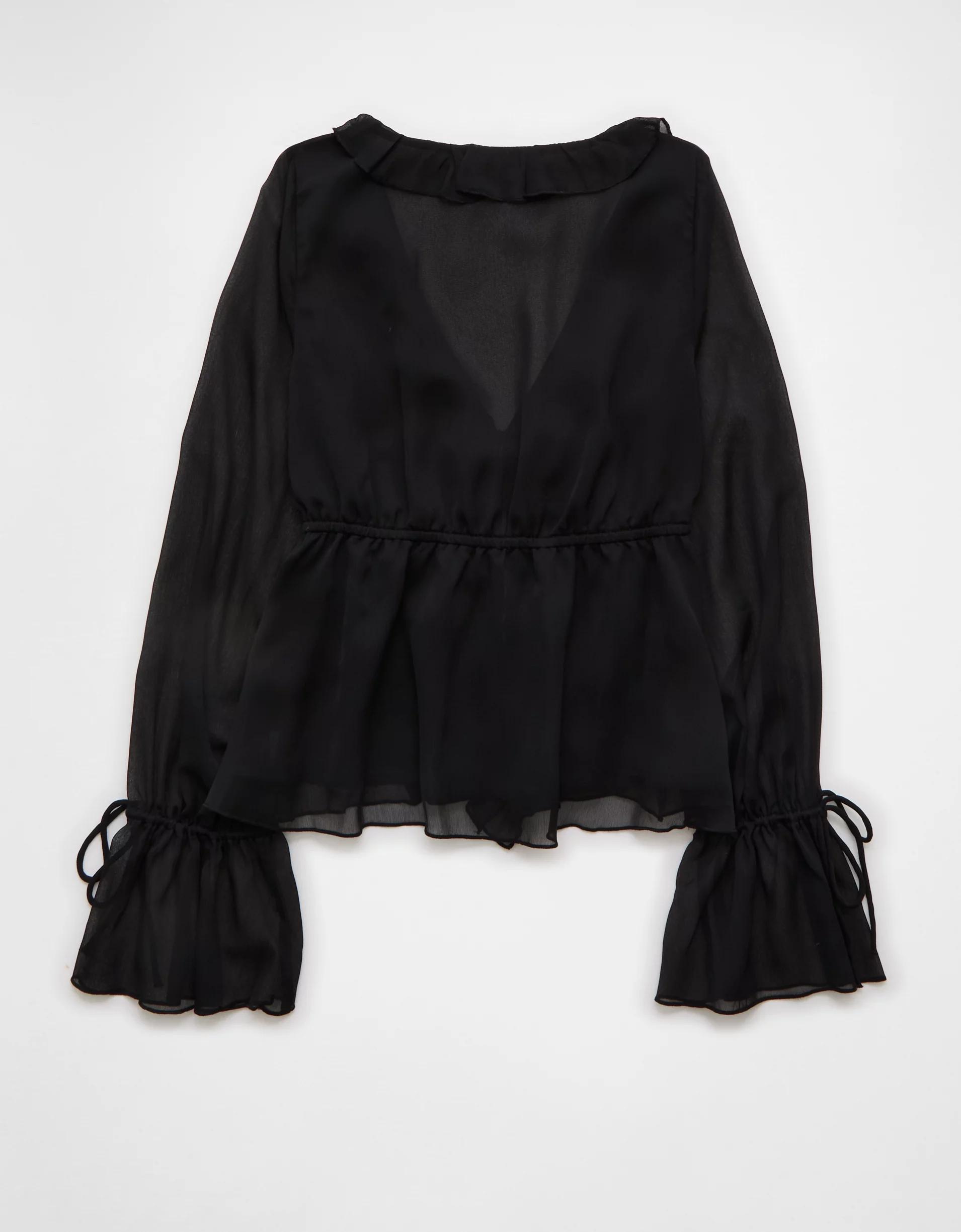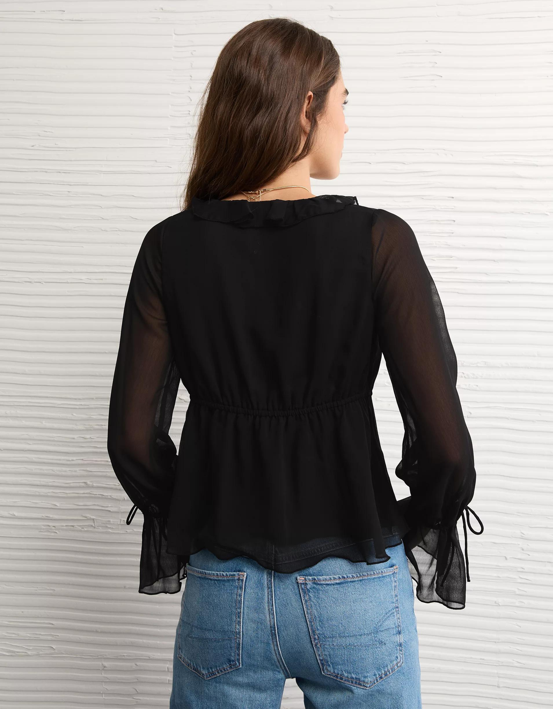 AE Long-Sleeve Chiffon Ruffle Blouse Women's