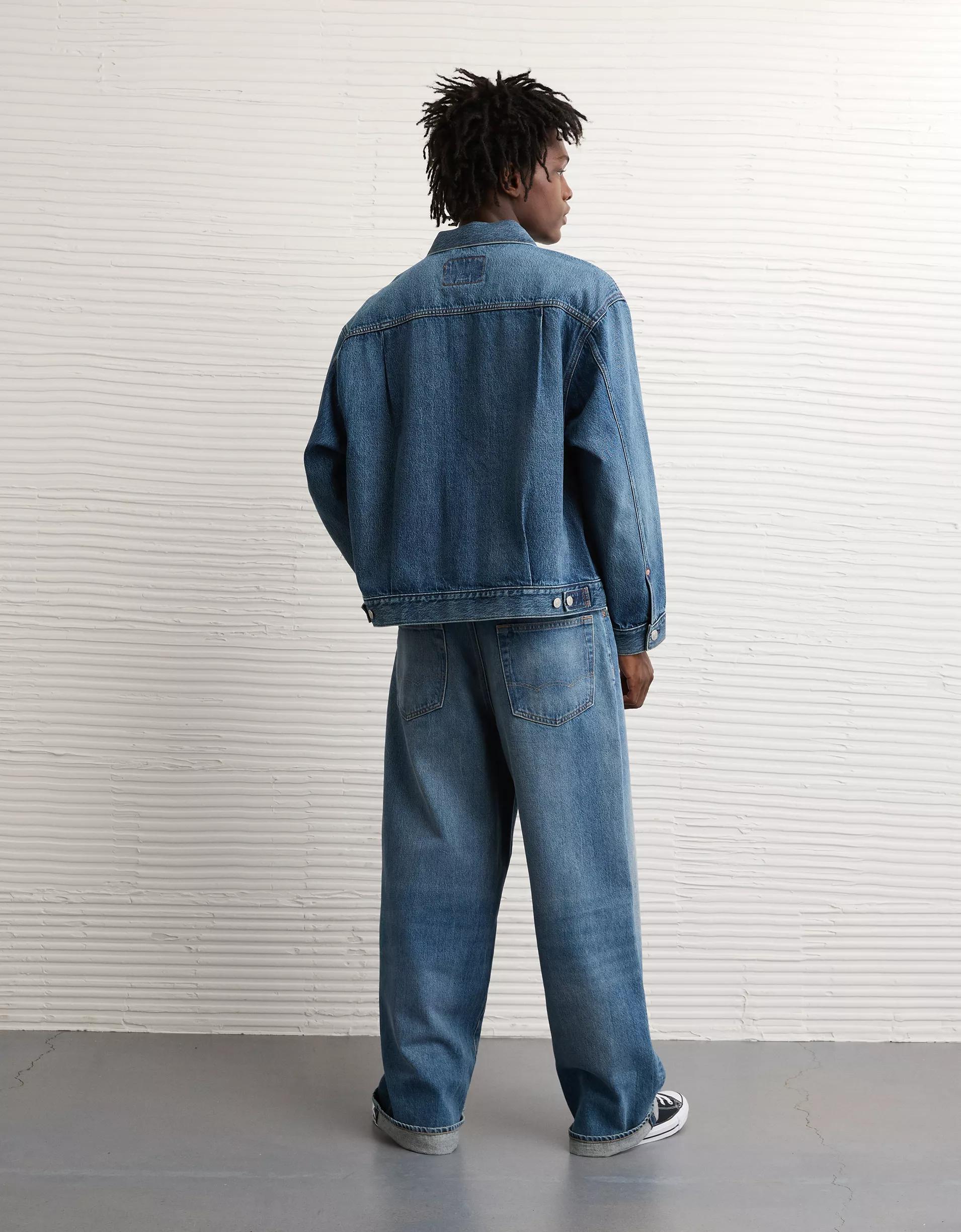 Inspired by authentic vintage jackets, this jean jacket features distressed denim fades and an oversized fit for vintage attitude from the start.