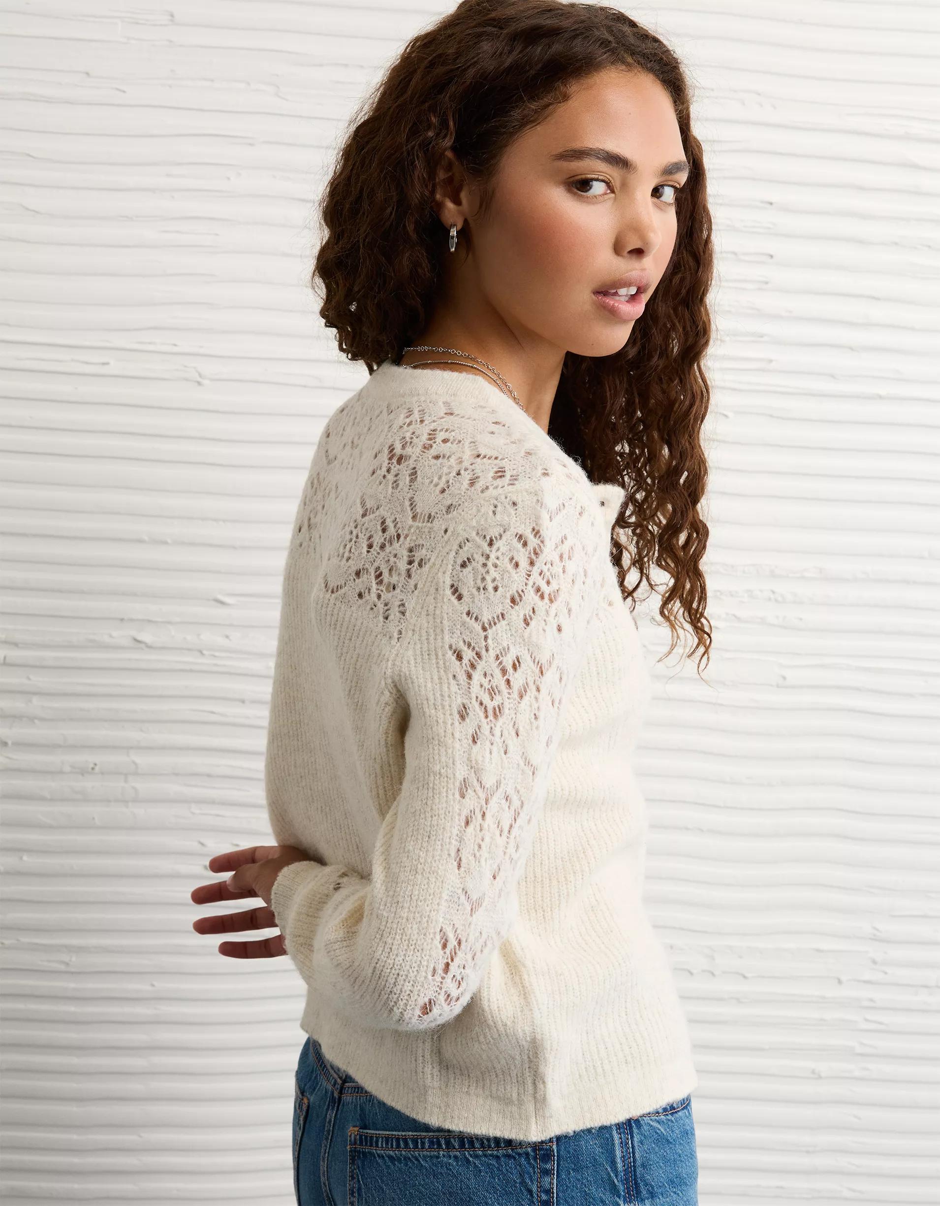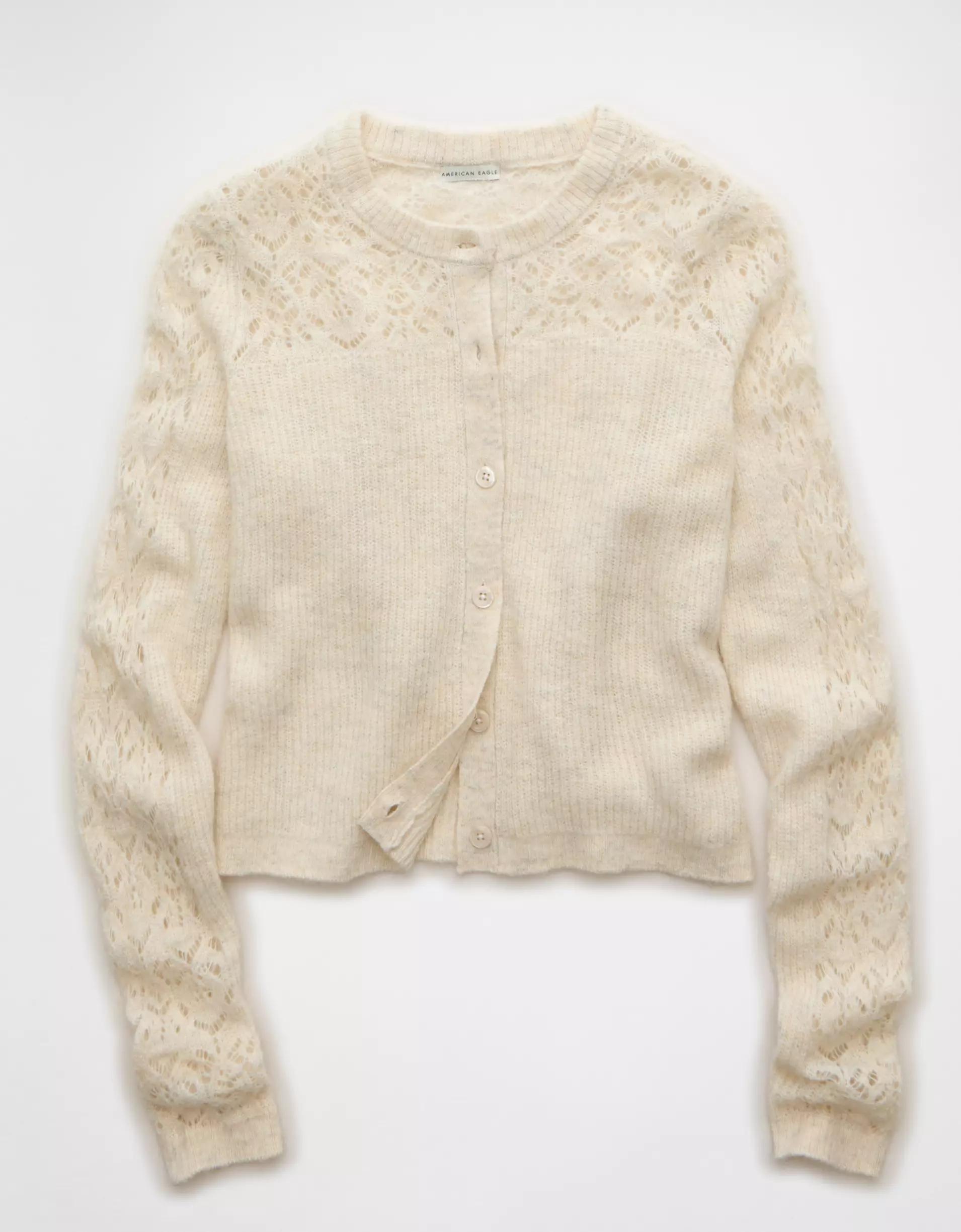 AE Short-Sleeve Collared Button-Up Cardigan Women's