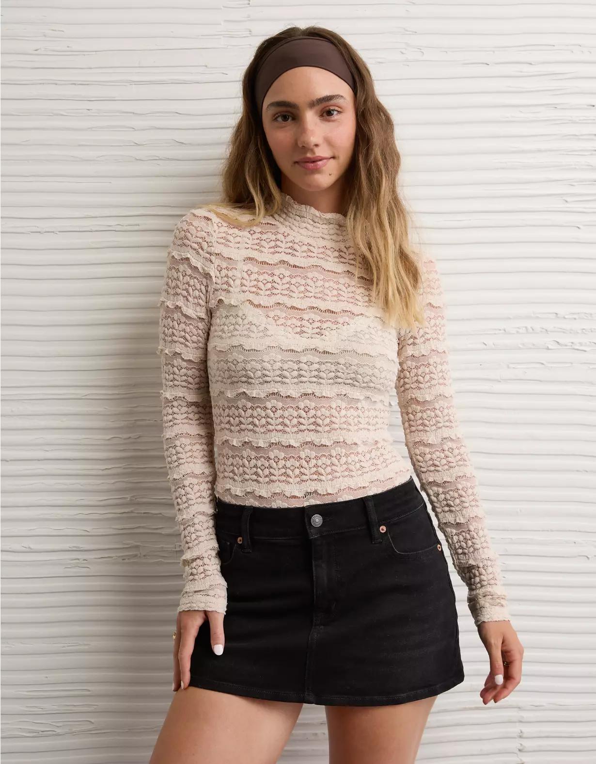 AE Long Sleeve Mock Neck Lace Bodysuit